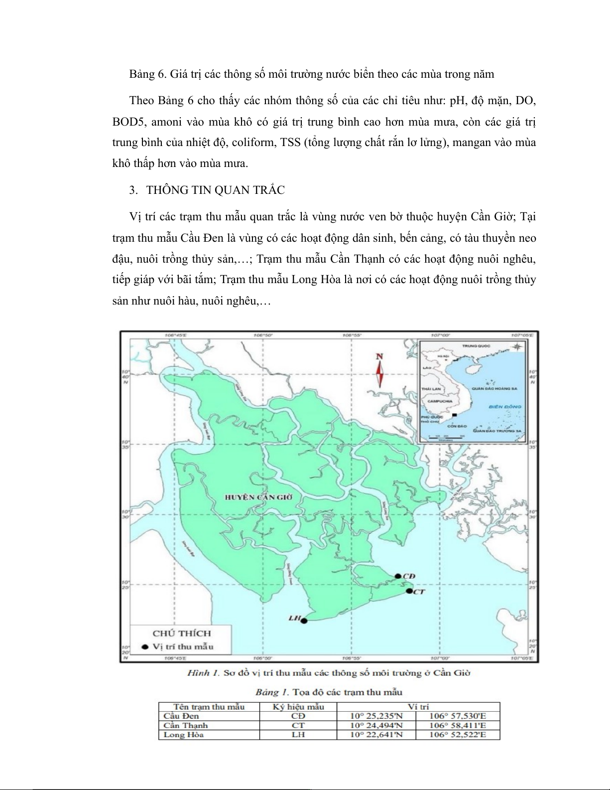 Vị trí các trạm thu mẫu quan trắc là vùng nước ven bờ thuộc huyện Cần Giờ; Tại