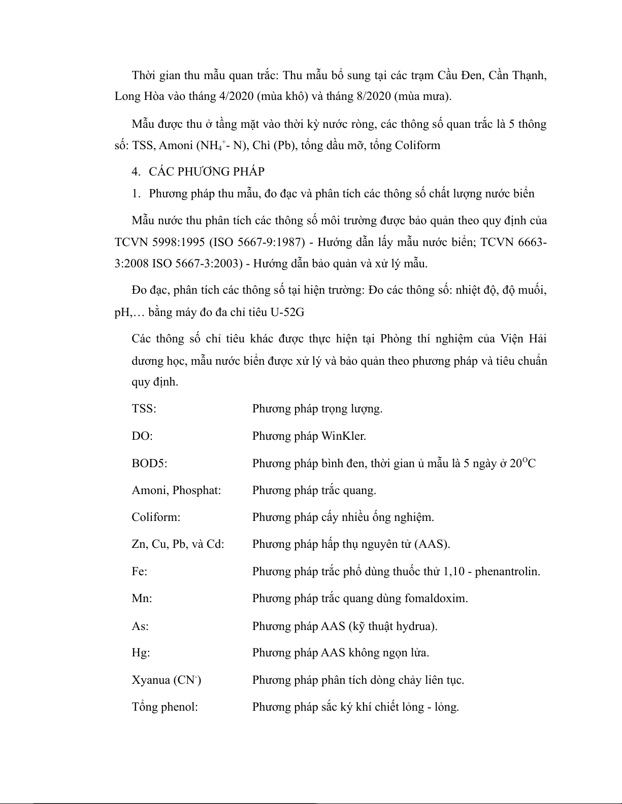 1. Phương pháp thu mẫu, đo đạc và phân tích các thông số chất lượng nước biển