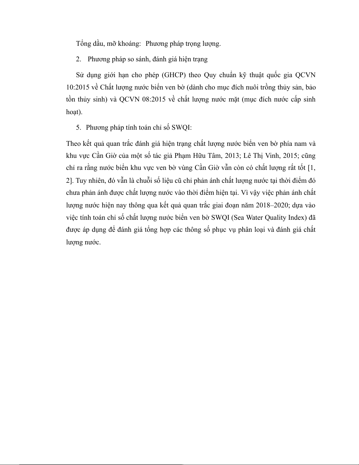 chỉ ra rằng nước biển khu vực ven bờ vùng Cần Giờ vẫn còn có chất lượng rất tốt [1,
