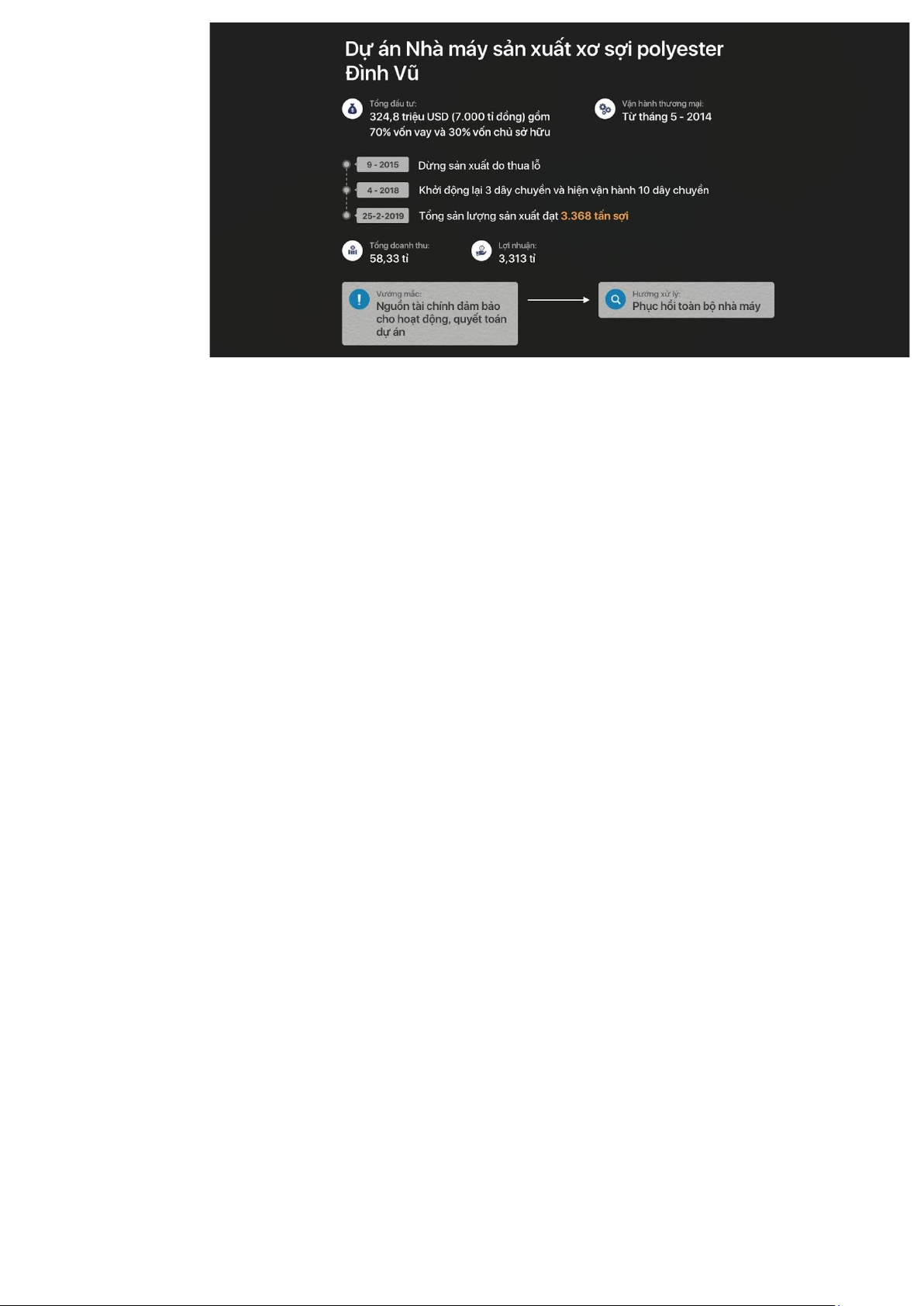 xuất kinh doanh. Họ cũng có phương án xử lý các đơn vị trực thuộc, dự án đầu tư thua lỗ, kém hiệu quả.