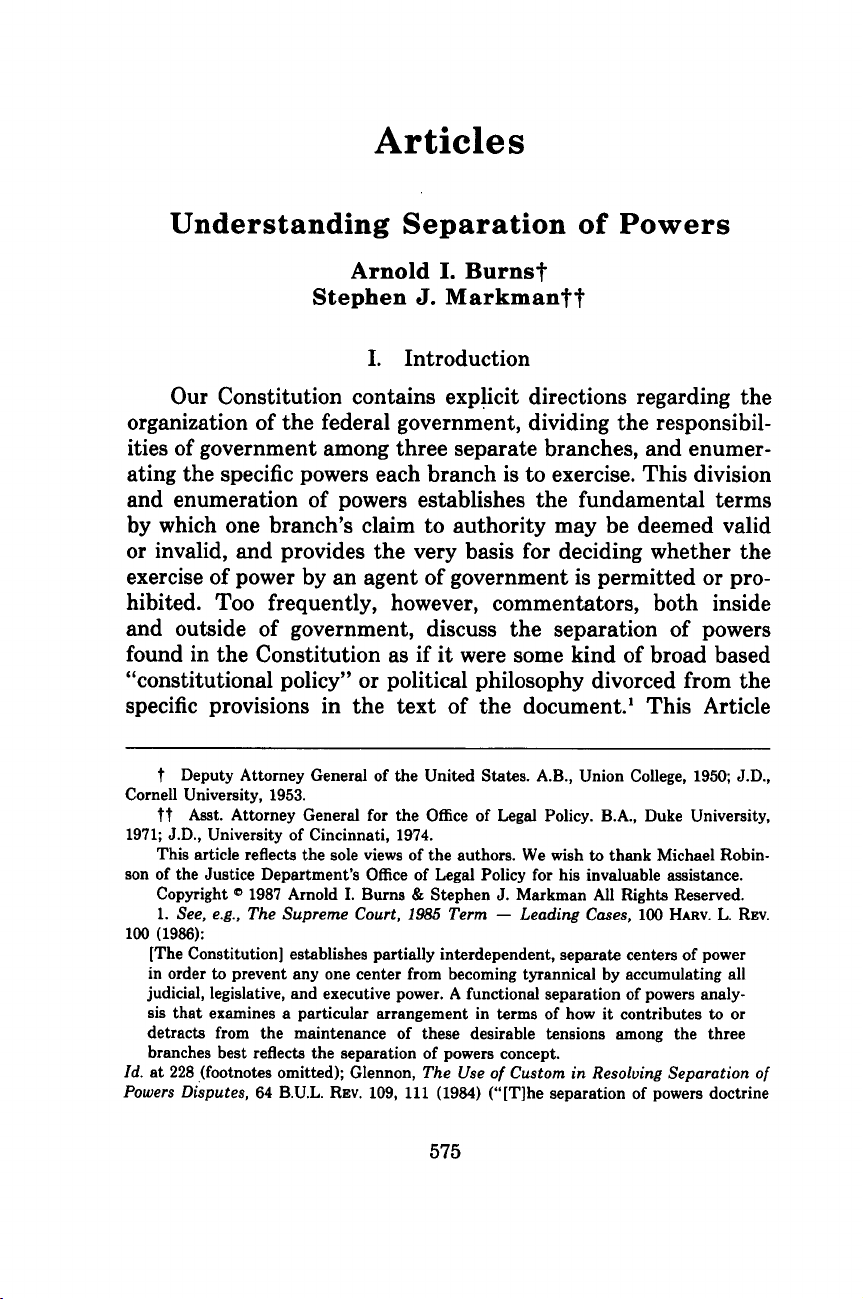 Hiểu về sự phân chia quyền lực Arnold I. Burns Stephen J. Markman