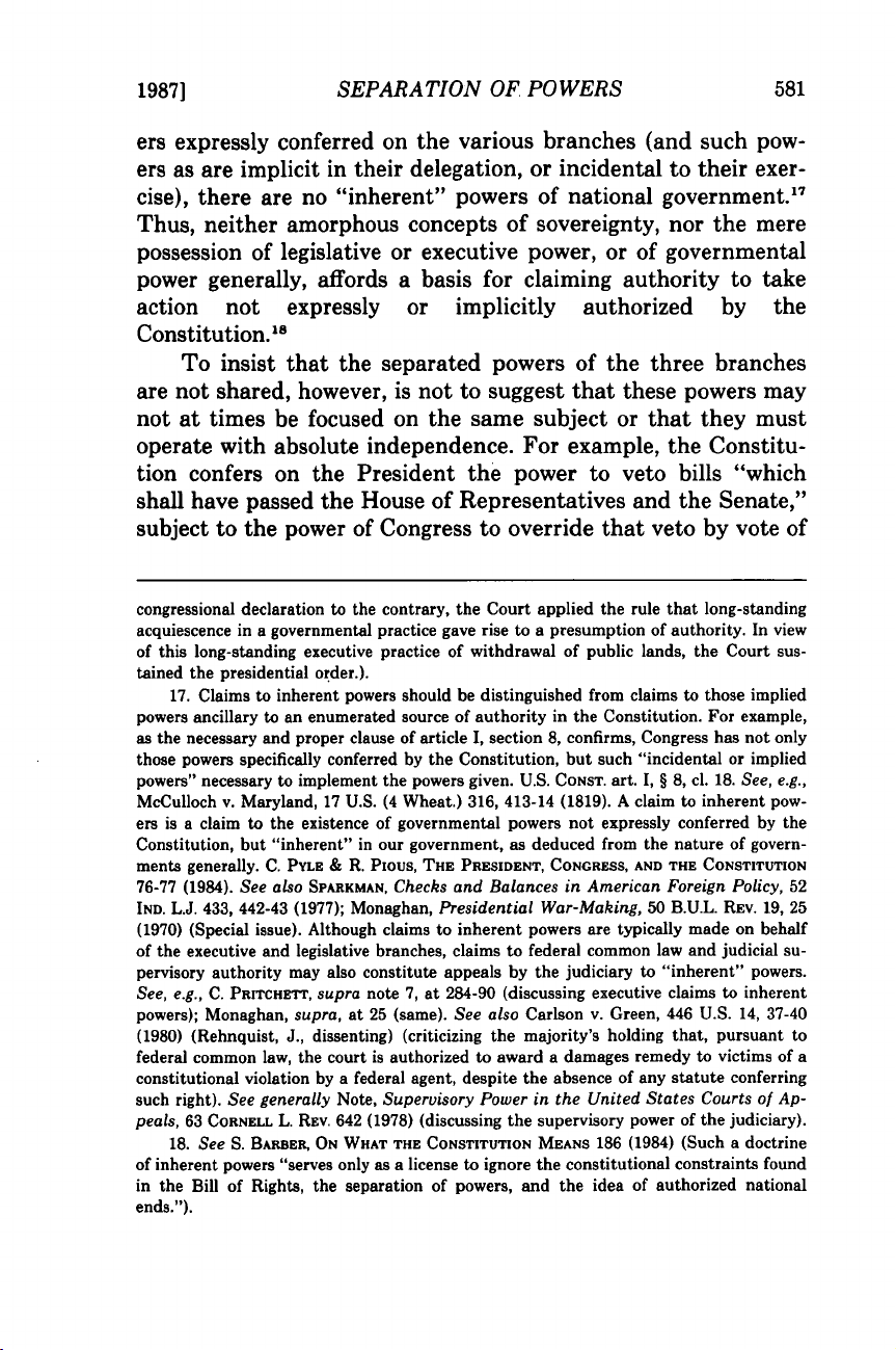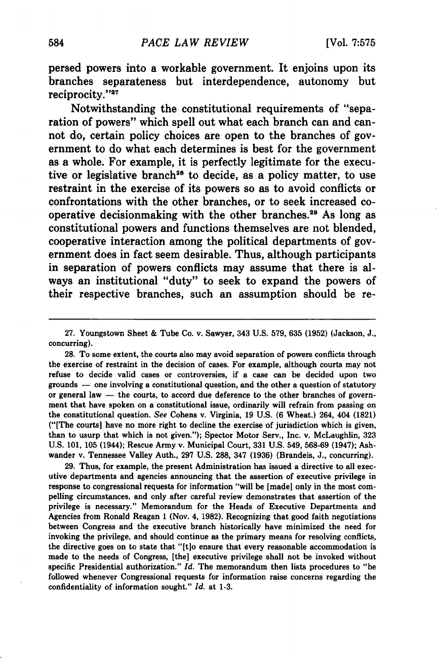 Arnold I. Burns và Stephen J. Markman,Hiểu về sự phân chia quyền lực, 7 Pace L. Rev. 575 (1987)
