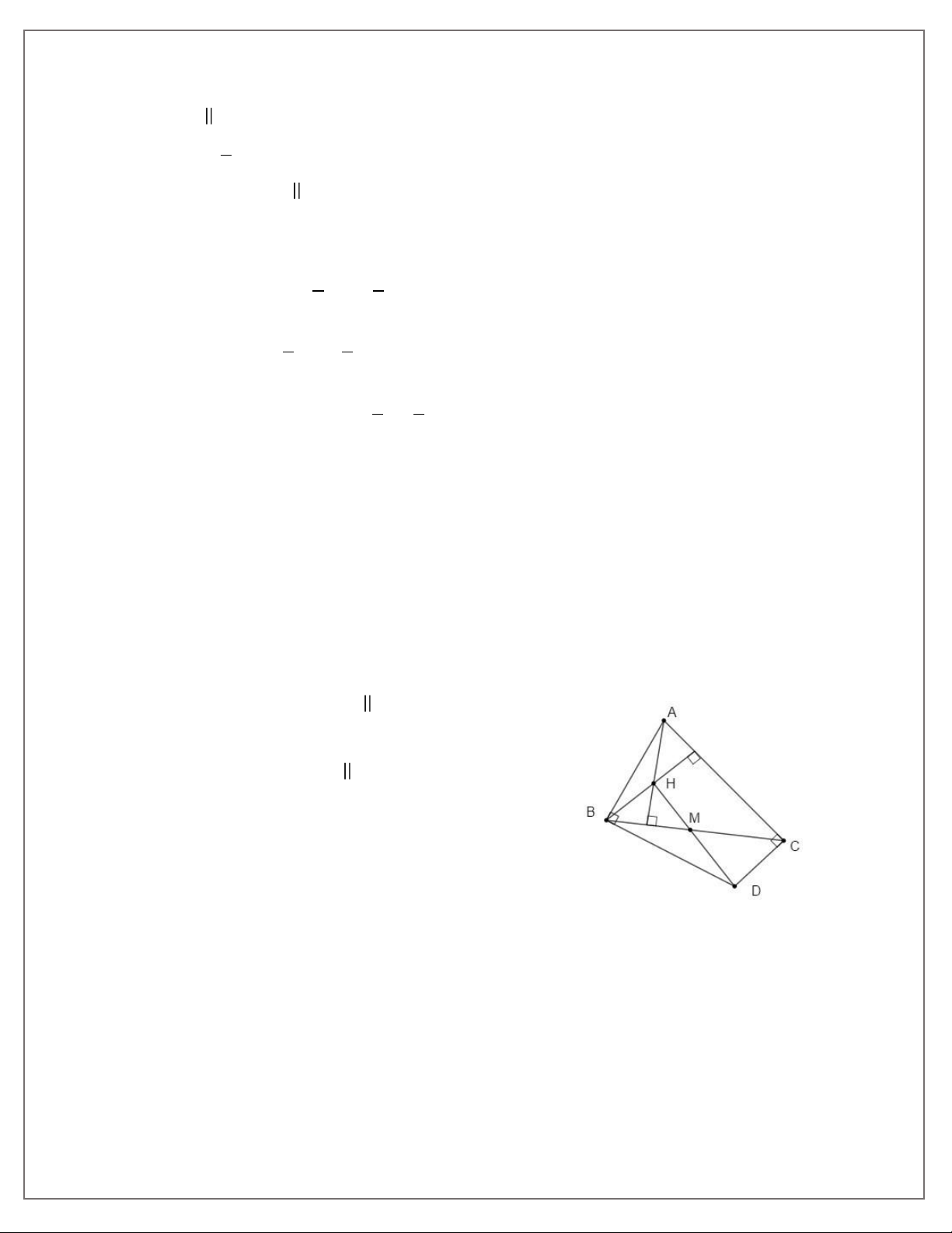 Bài 4. Cho ∆ABC , trực tâm H. Các đường thẳng vuông góc với AB tại B, vuông góc với AC tại C cắt nhau tại D. CMR: