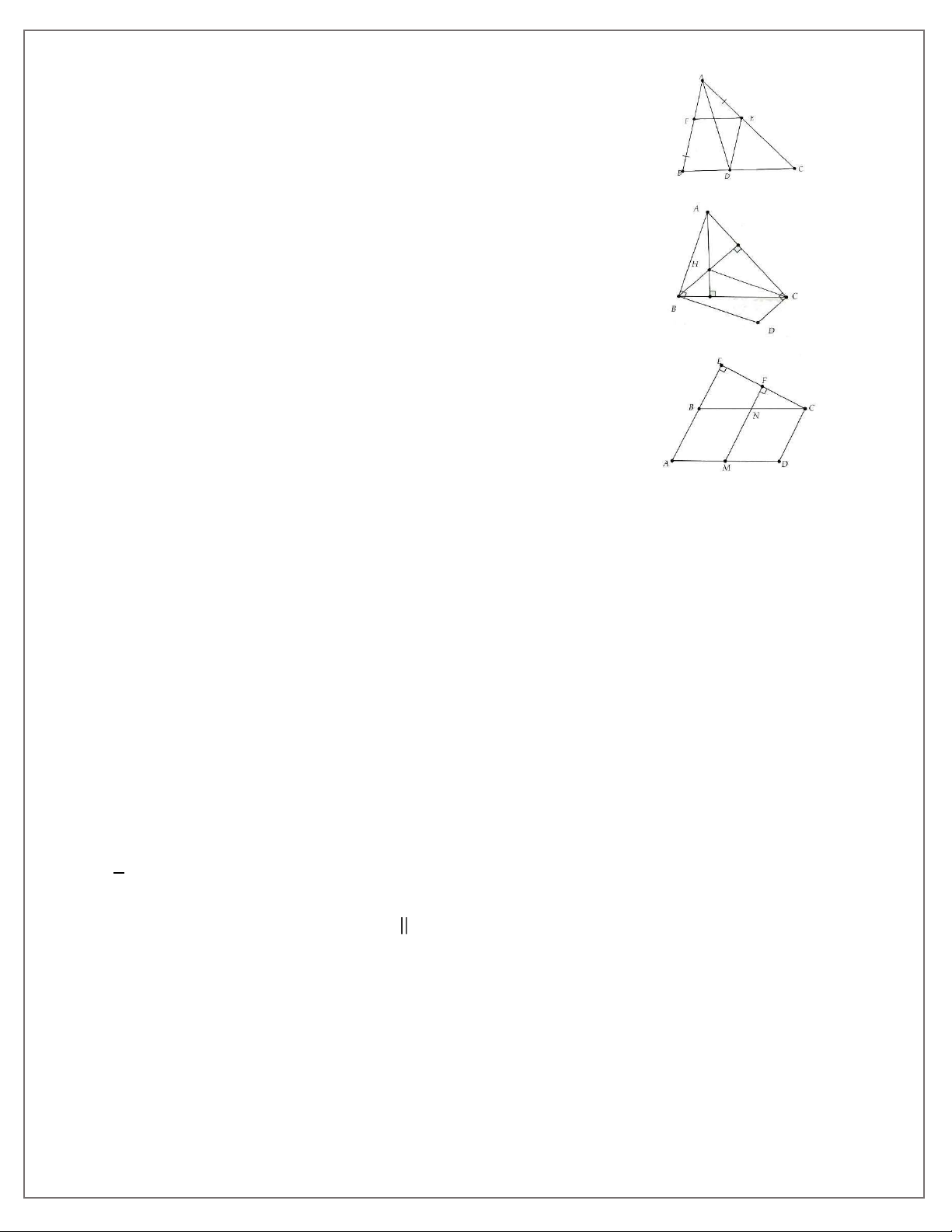Bài 1. Cho hình bình hành ABCD . Gọi E và F theo thứ tự là trung điểm của AB và CD .