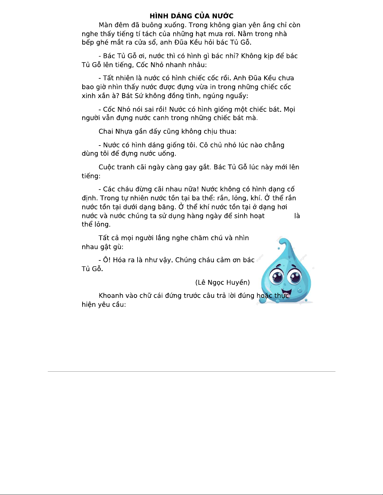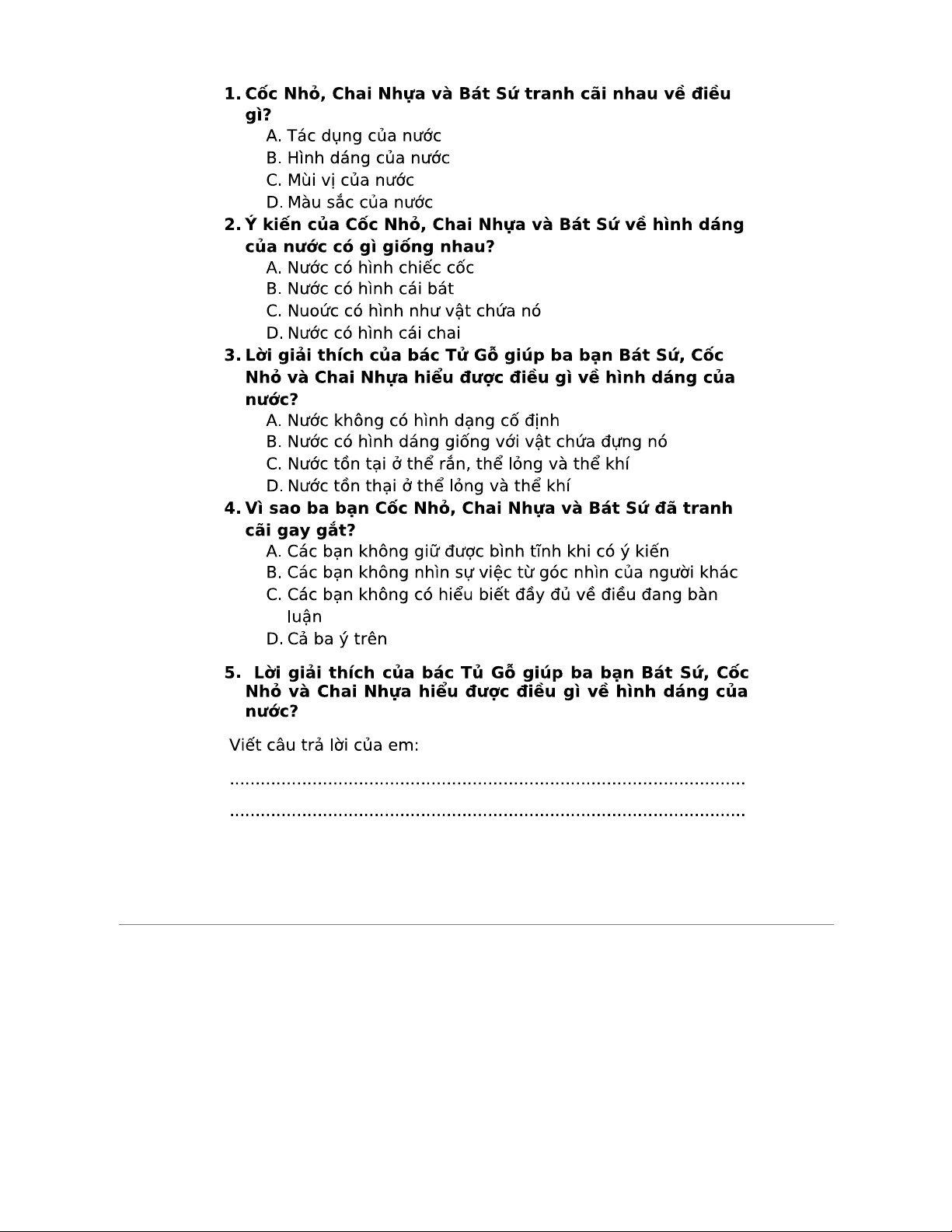 HÌNH DÁNG CỦA NƯỚC - THẢO LUẬN VÀ CÂU HỎI ÔN TẬP