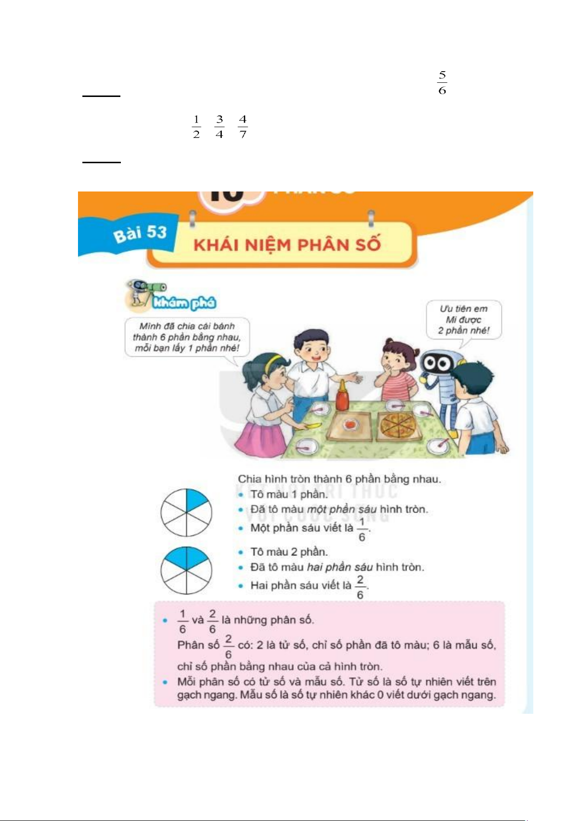 Bước 2: Giới thiệu các phân số khác tương tự như giới thiệu phân số      Chẳng hạn, phân số   ; ;