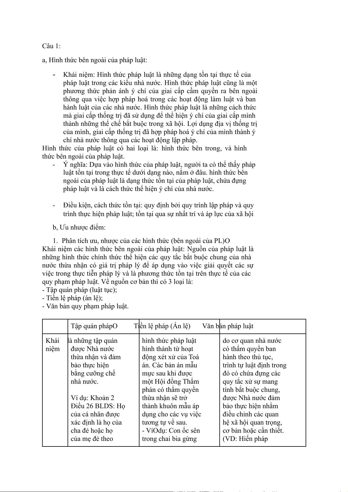 1. Phân tích ưu, nhược của các hình thức (bên ngoài của PL)O