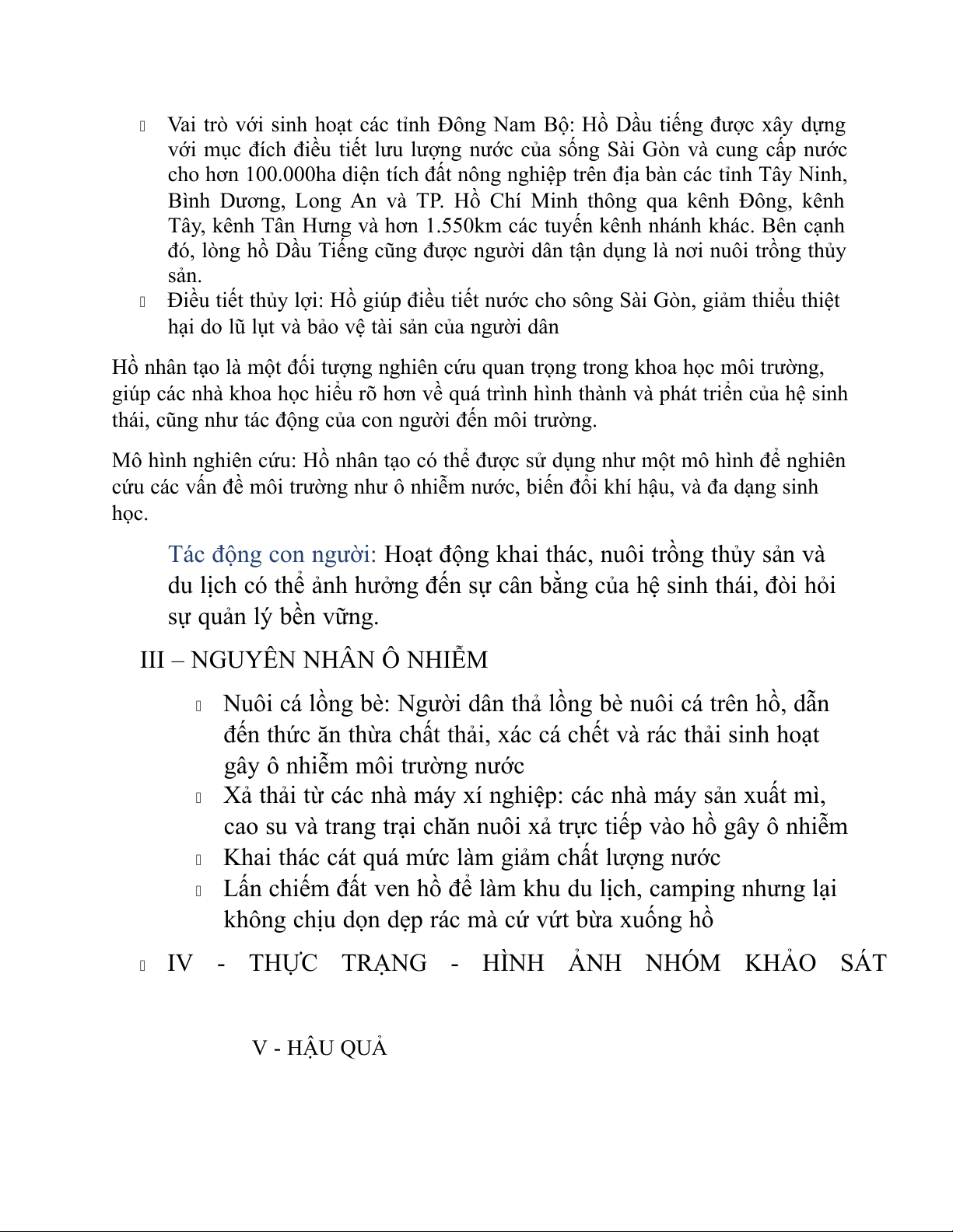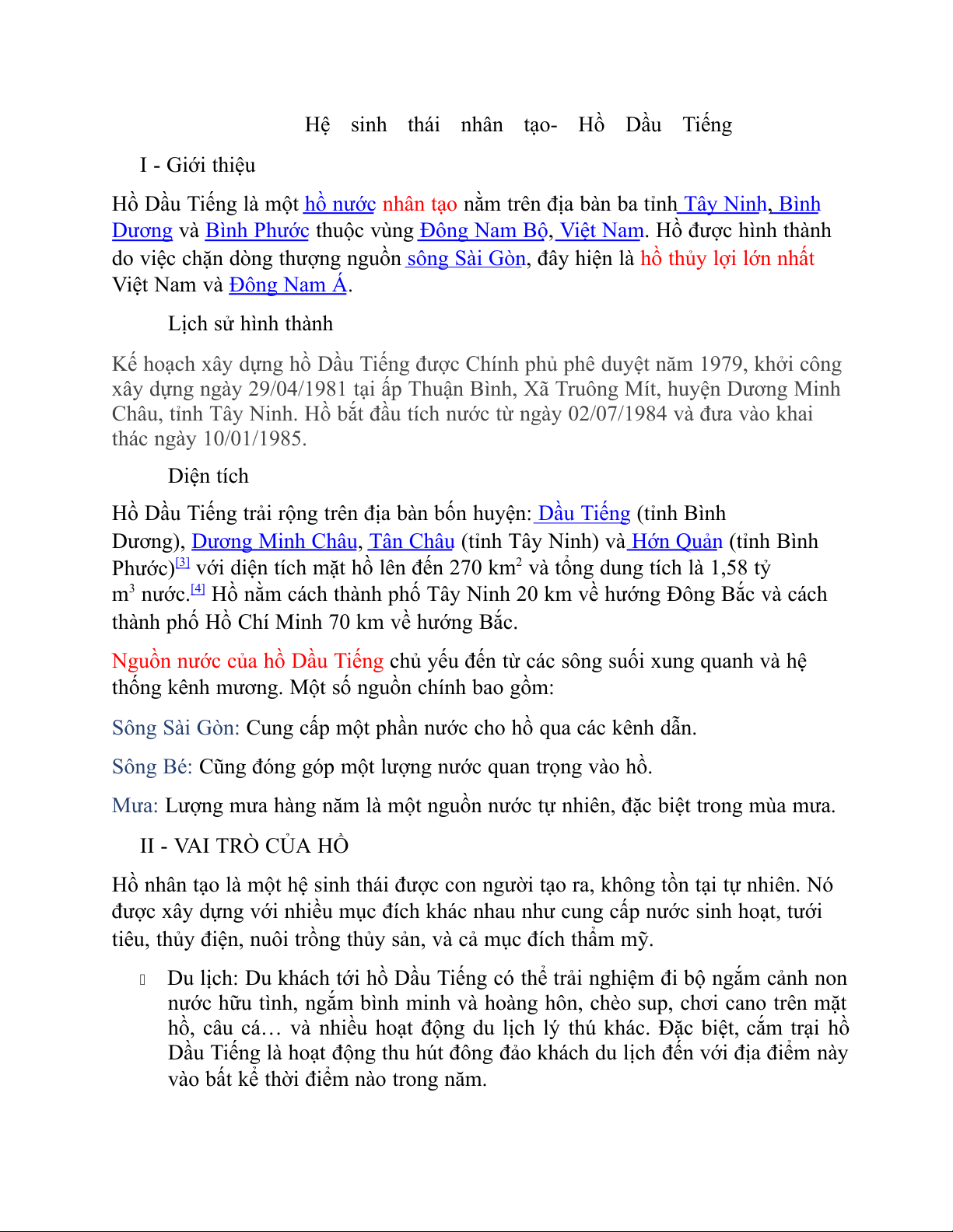 Hệ sinh thái nhân tạo- Hồ Dầu Tiếng I - Giới thiệu