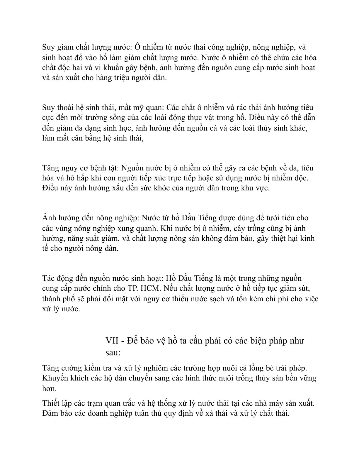 VII - Để bảo vệ hồ ta cần phải có các biện pháp như sau: