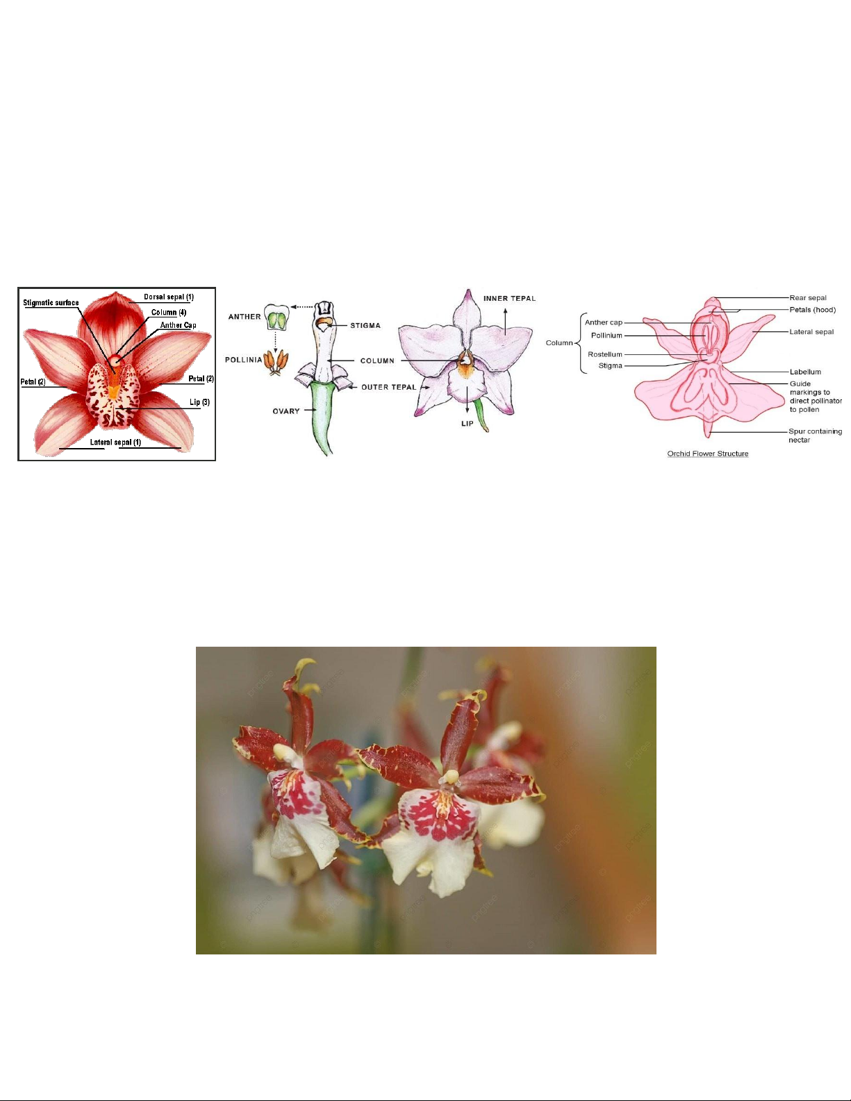 hoa - một cánh biến thành môi (labellum). Nhị hoa và nhụy/kiểu được trang trí trang trí để tạo