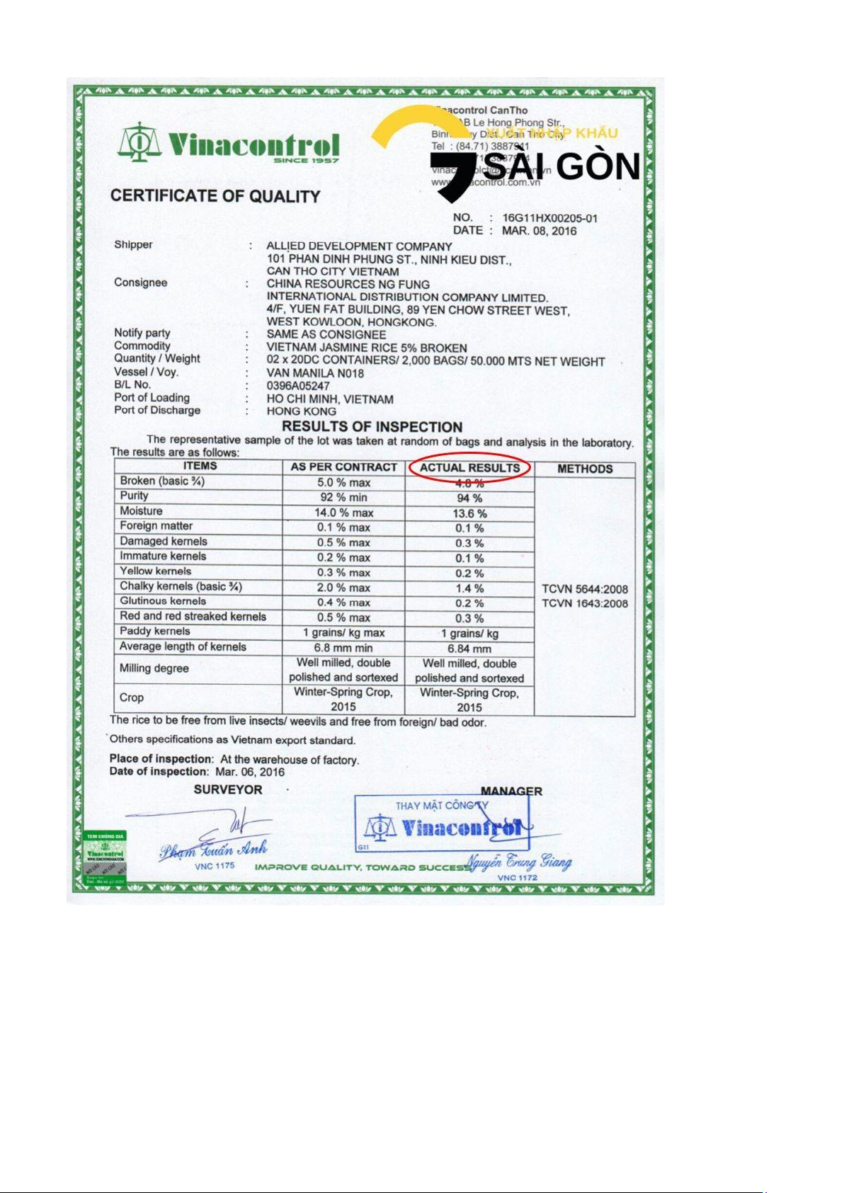 nhận xuất xứ, giấy chứng nhận số lượng, và giấy chứng nhận chất lượng.