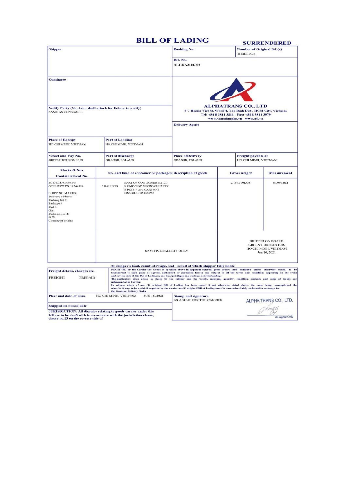 Trong hệ thống chứng từ vận tải, vận đơn đường biển là chứng từ quan trọng nhất vì