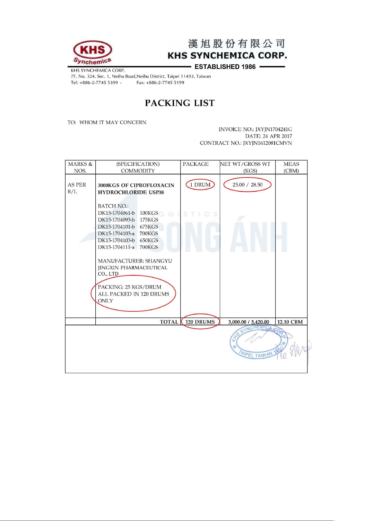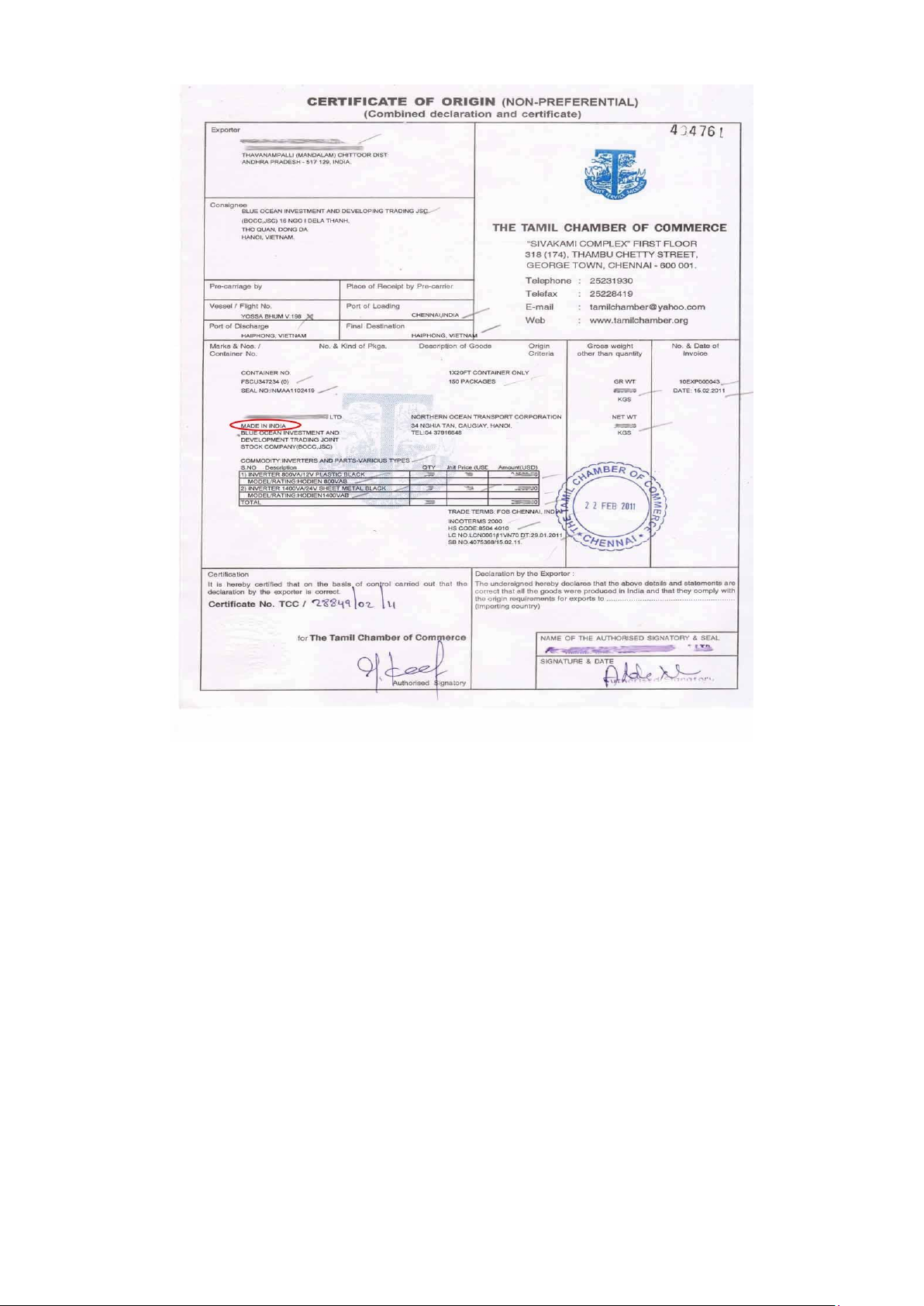 5. Phiếu đóng gói hàng hóa............................................................................................................................. 6. Giấy chứng nhận xuất