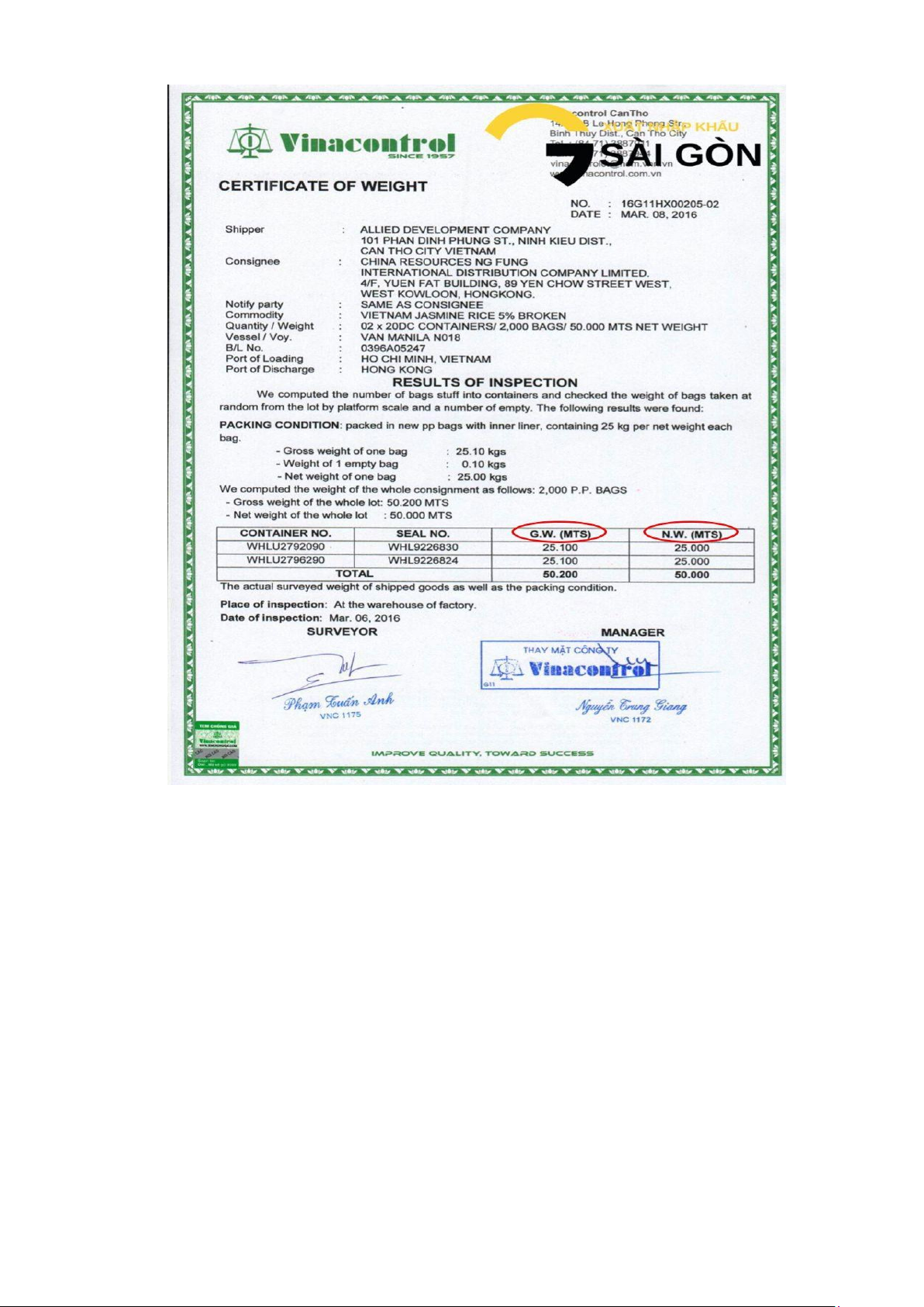 lượng/trọng lượng...................................................................................................... 8. Giấy chứng nhận