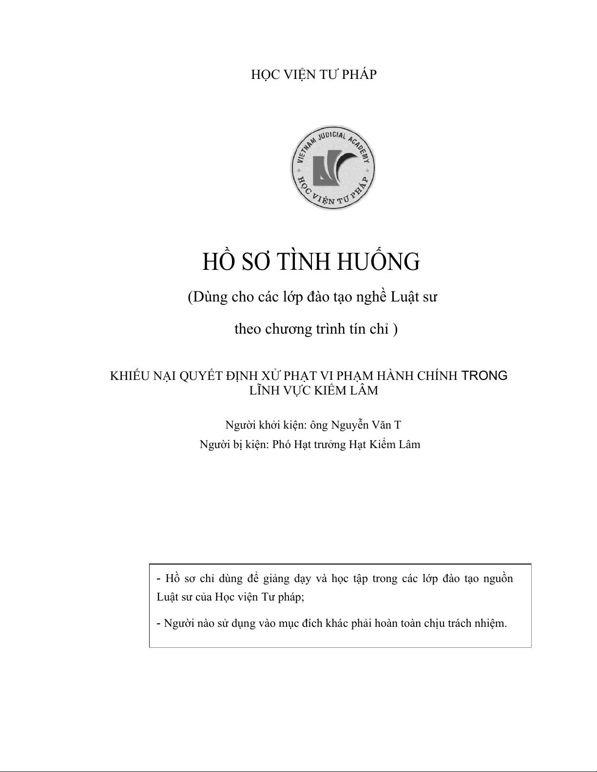 HỌC VIỆN TƯ PHÁP HỒ SƠ TÌNH HUỐNG