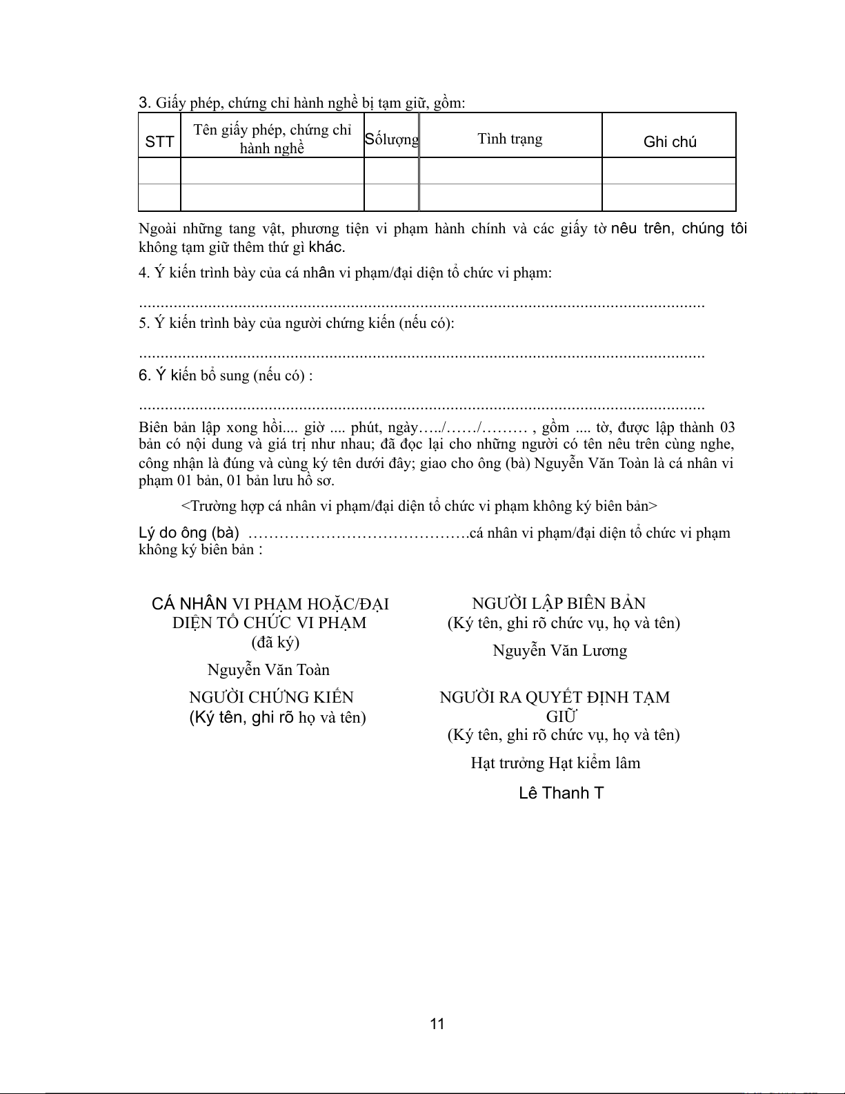 Biên bản tạm giữ tang vật, phương tiện vi phạm 10 6. Biên bản xác minh 12 7.
