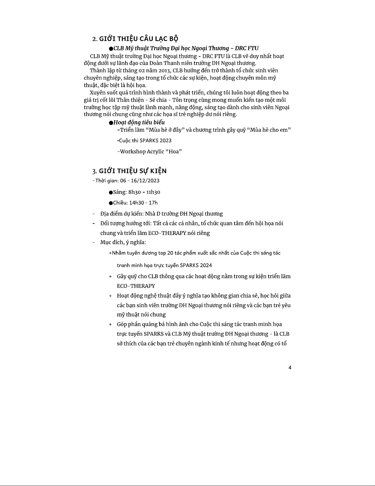 HỒ SƠ TÀI TRỢ CLB MỸ THUẬT - SỰ KIỆN ECO THERAPY 2024