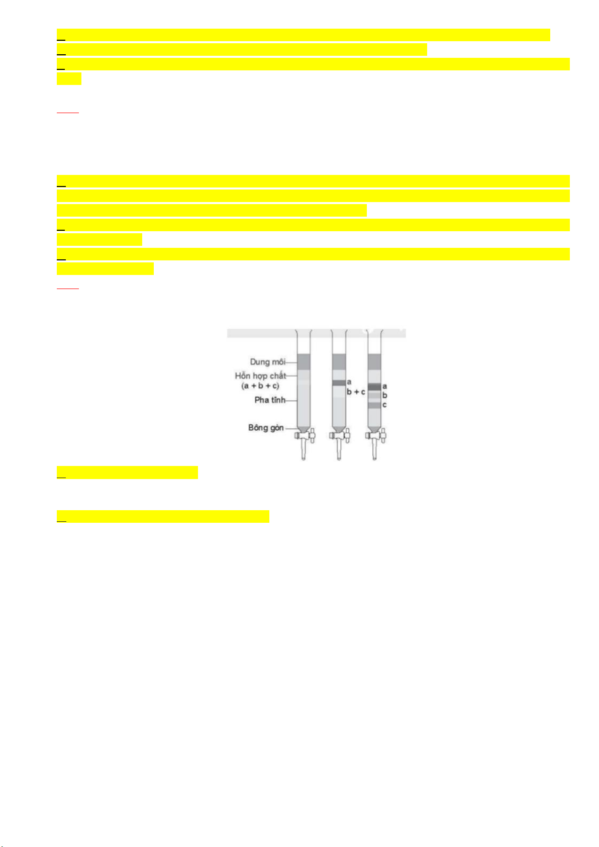 Câu 5. Quan sát hình mô phỏng thí nghiệm sắc kí cột sau: