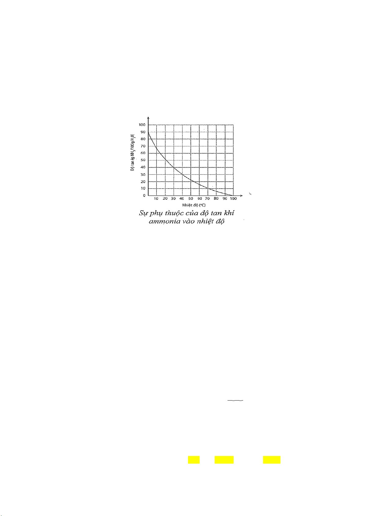 Câu 8. Sự phụ thuộc của độ tan khí ammonia trong nước vào nhiệt độ được mô tả ở hình dưới đây: