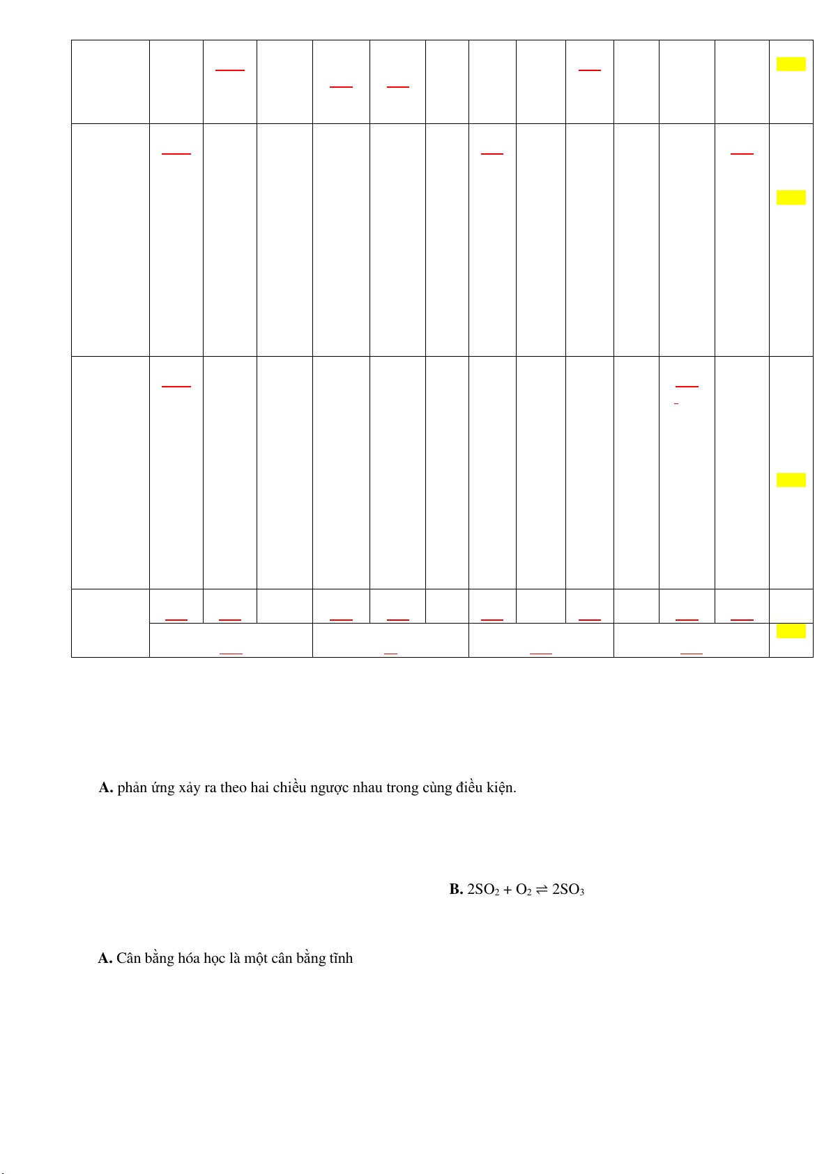 Câu 1. Phản ứng thuận nghịch là phản ứng