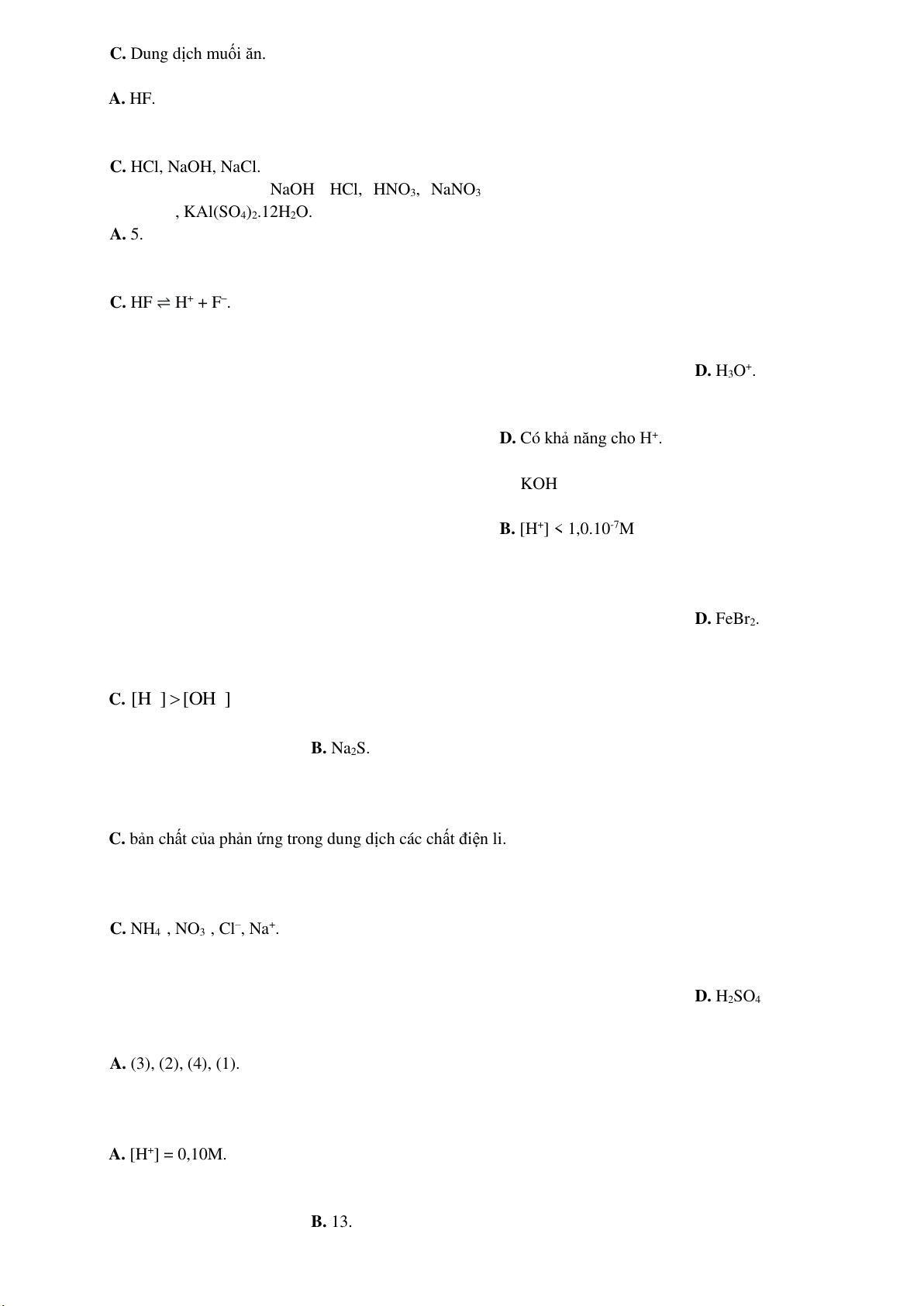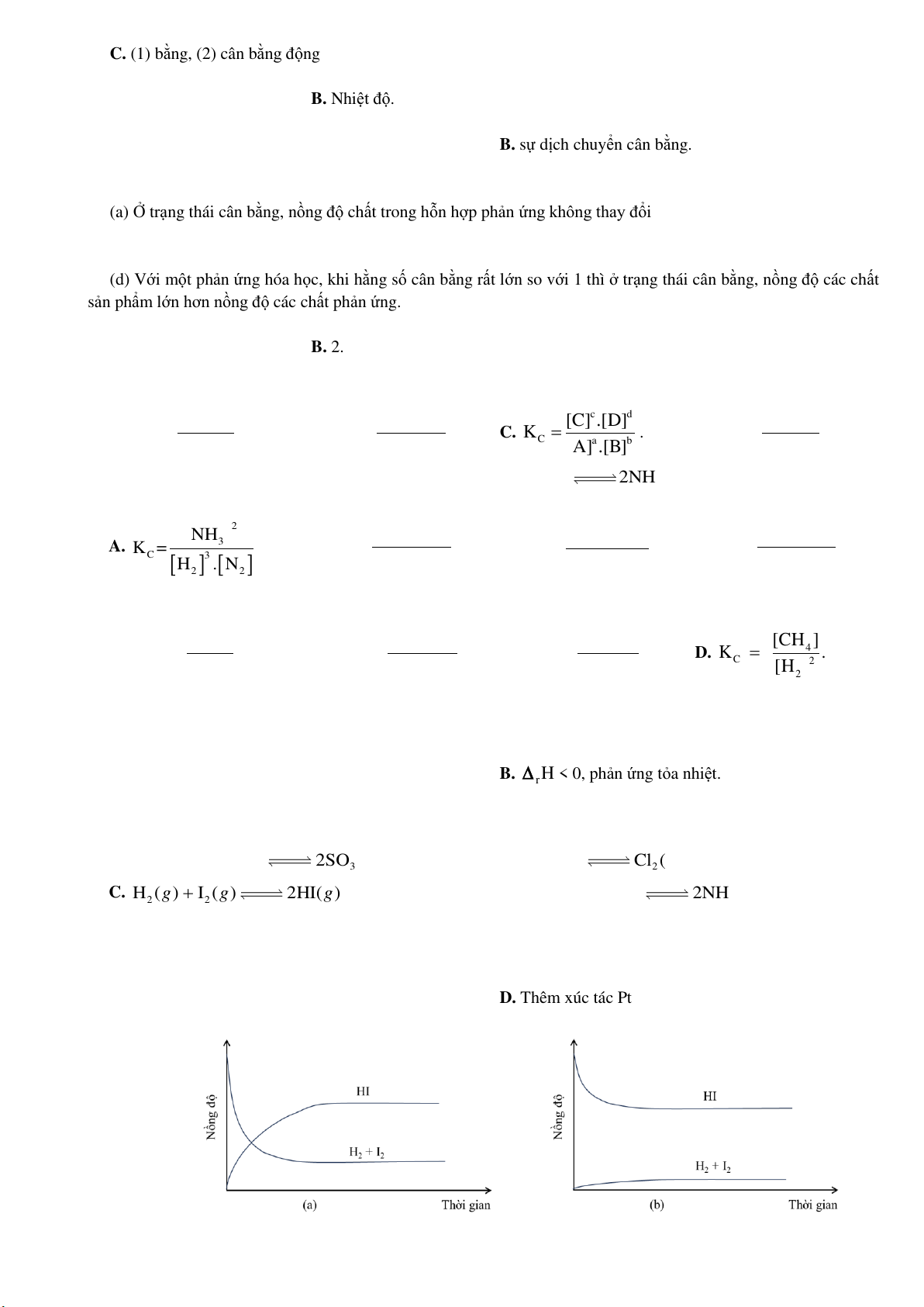 Câu 10. Biểu thức nào sau đây là biểu thức hằng số cân bằng (KC) của phản ứng: