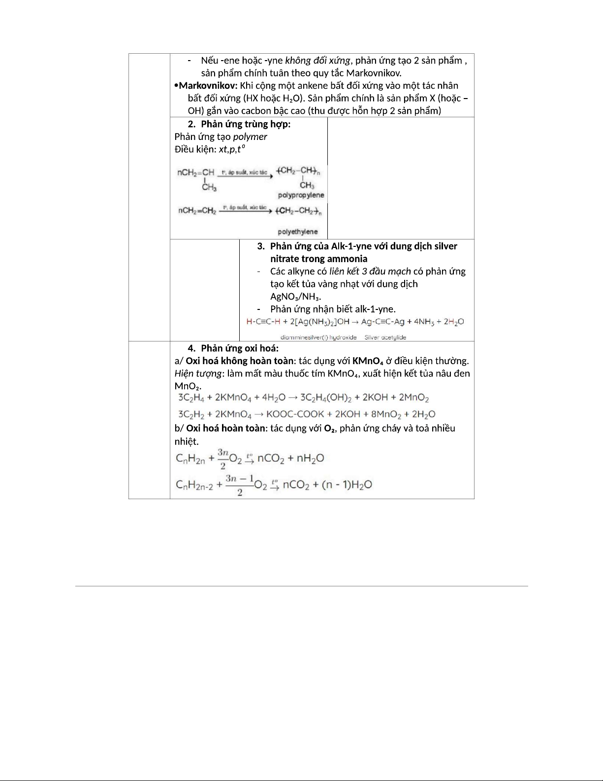 Hoá 11 GK2 - Tổng hợp kiến thức căn bản về Alkene và Alkyne