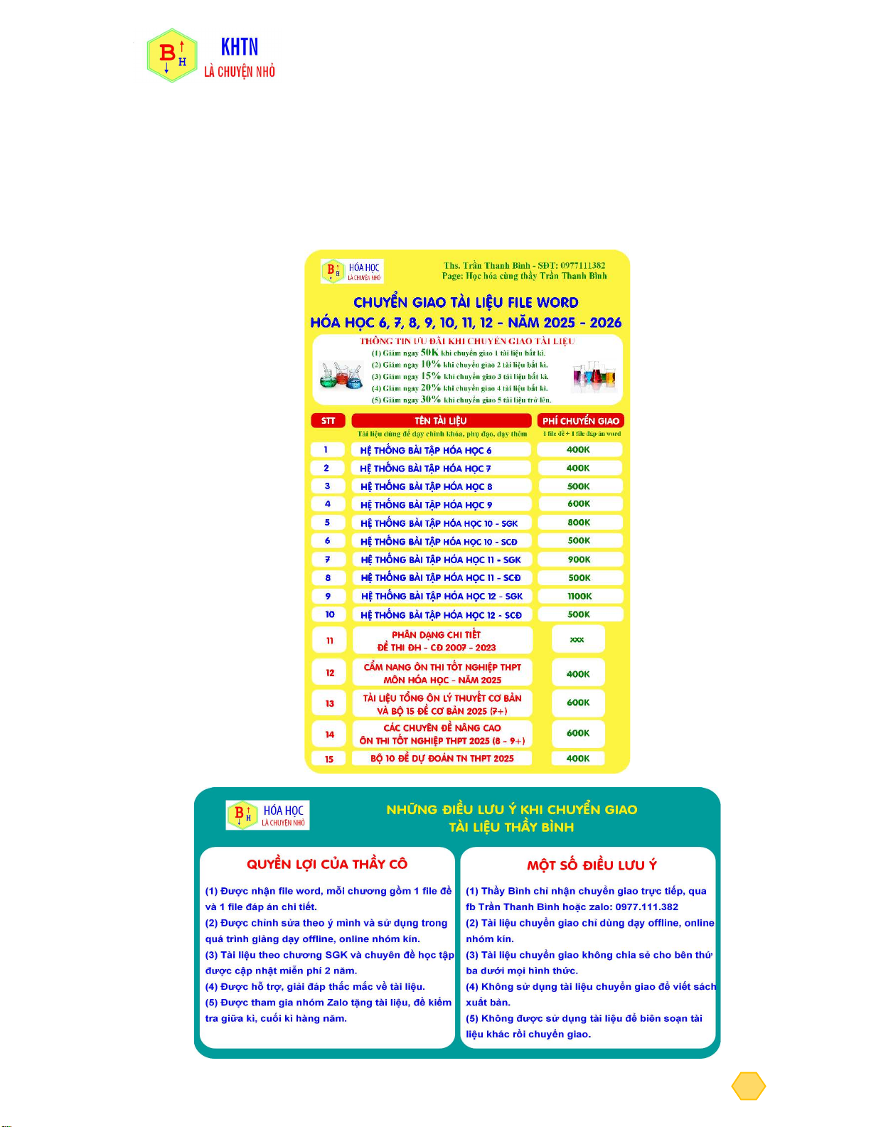 Chuyển giao tài liệu dạy thêm file word Hóa 6, 7, 8, 9, 10, 11, 12 – ôn tốt nghiệp 2 GV: Trần Thanh Bình SĐT: 0977.111.382