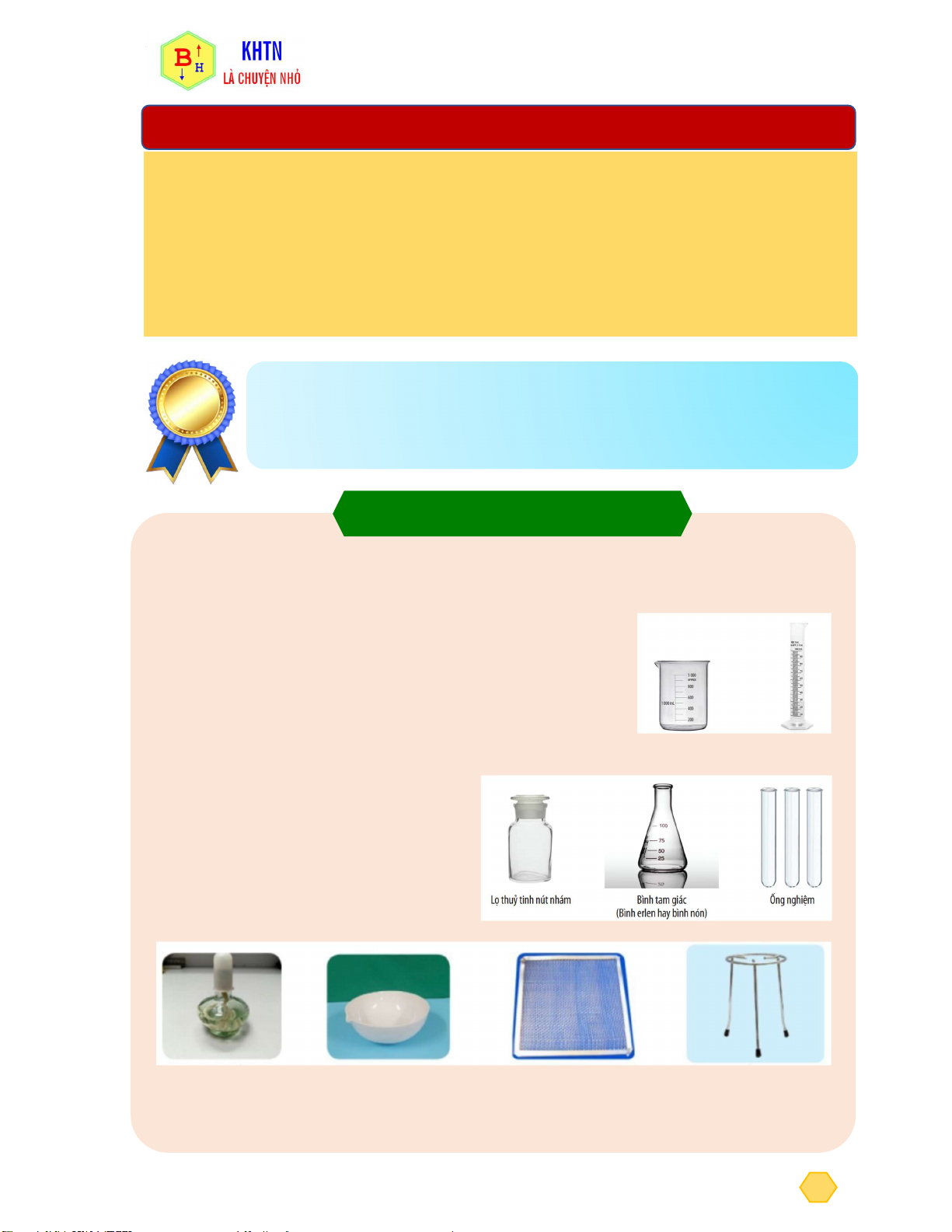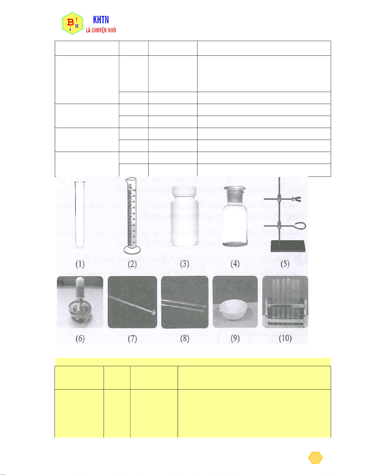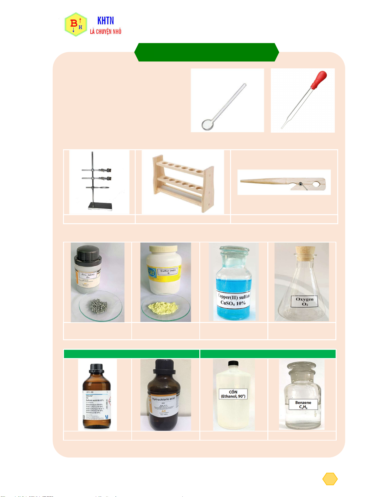 I. Một số dụng cụ và hóa chất thí nghiệm