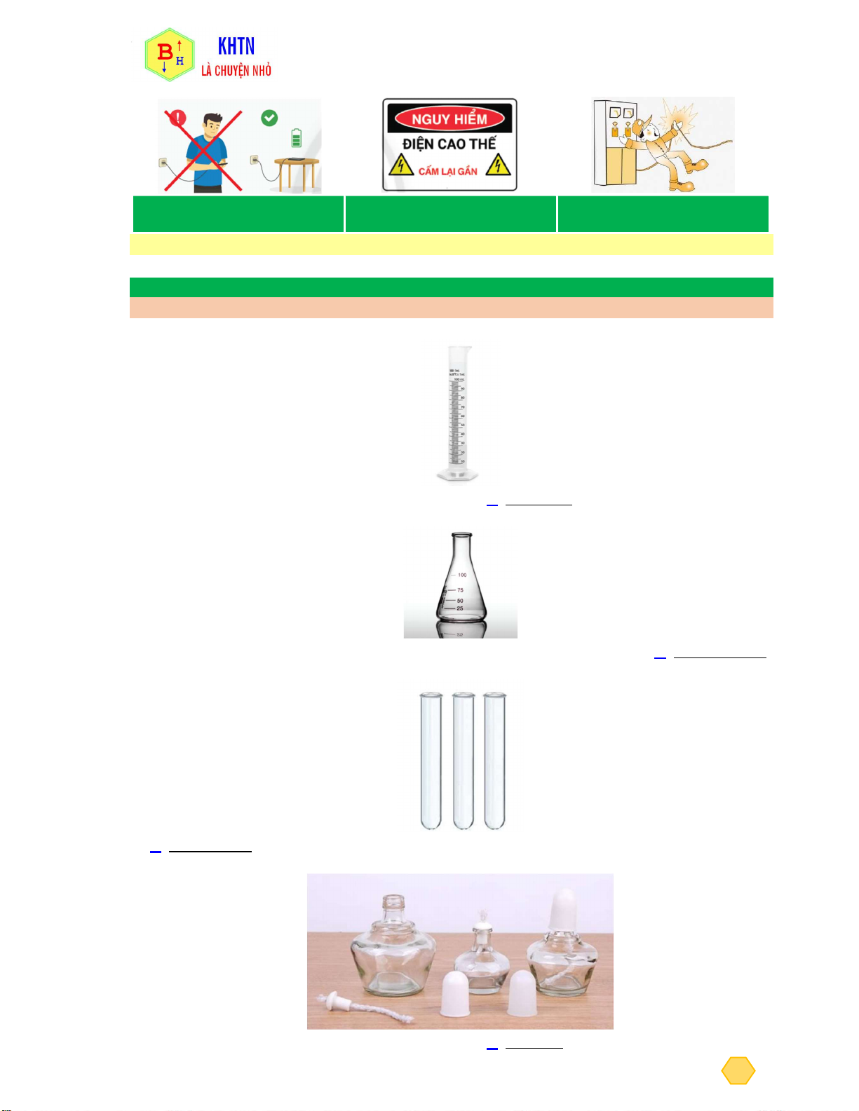 chất, vỡ dụng cụ thí nghiệm.