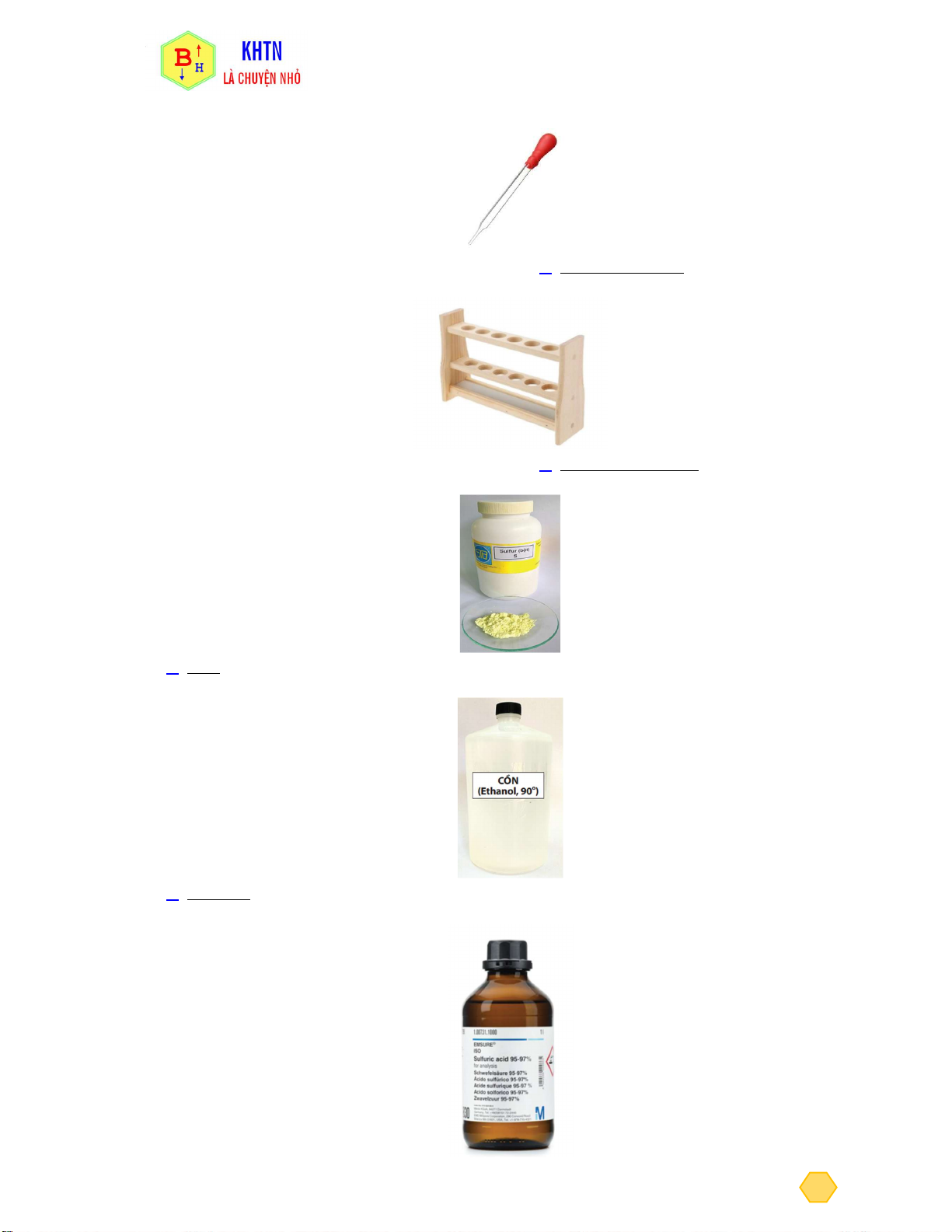 Câu 43. Cho các hóa chất: Kẽm (Zin, Zn) Sulfuric acid (H2SO4) Cồn (C2H5OH) Oxygen (O2)
