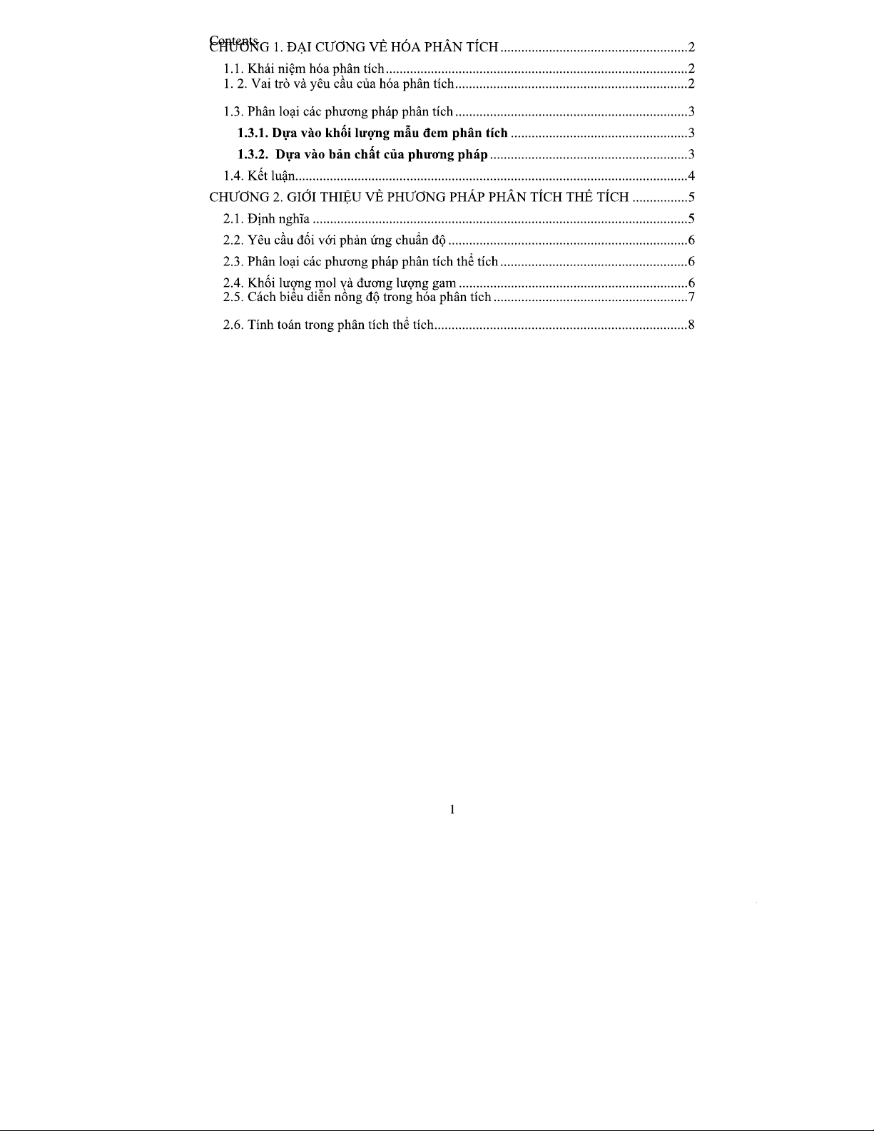 HÓA PHÂN TÍCH 1 - Giáo Trình Chương 1 & 2 về Phân Tích Thể Tích