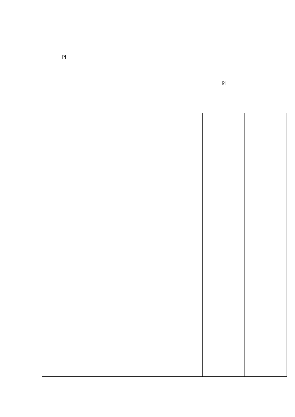 câu hỏi được yêu cầu yêu cầu dung) câu hỏi (nội được yêu - Có sự (nội dung) sáng tạo cầu dung) được được yêu cầu trong cách giải quyết yêu cầu vấn đề. Thuy - Rõ ràng - Các thành - Bải - Bài - Bài lOMoARcPSD| 60380256 ết - và đúng - viên trả thuyết thuyết thuyết trình yêu cầu lời được trình trình trình Bài pptx các câu trả lời chưa chưa có hình hỏi được các trả lời trả lời ảnh/âm đưa ra câu được được thanh đẹp Khả năng hỏi các các thuyết - và thuyết (nội câu hỏi câu hỏi phục Khả trình tốt dung) (nội (nội năng như dung) dung) yêu - thuyết yêu yêu trình tốt cầu cầu cầu Trả lời Phân Nhiều Nhiều đúng và công lỗi lỗi có sự cụ thể chính chính sáng tạo rõ tả, tả, trong ràng cách trả từng hình hình ảnh, ảnh, lời thành bảng bảng viên trả lời biểu biểu - - - 2. Quản lý thời gian: