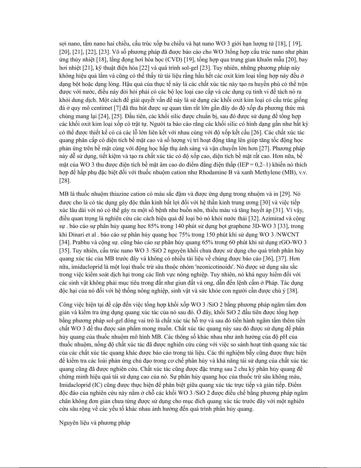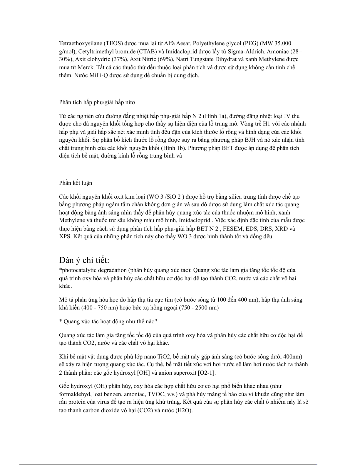 *Để khắc phục nhược điểm của việc sử dụng Wo3/SiO2 làm xúc tác quang, có thể thực hiện các biện pháp sau: