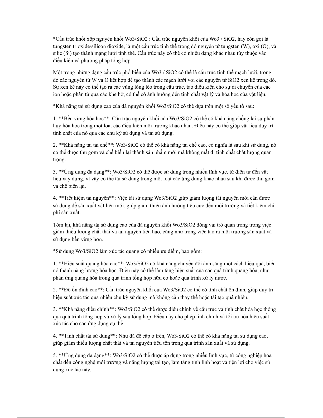 2. **Khả năng tái tái chế**: Wo3/SiO2 có thể có khả năng tái chế cao, có nghĩa là sau khi sử dụng, nó