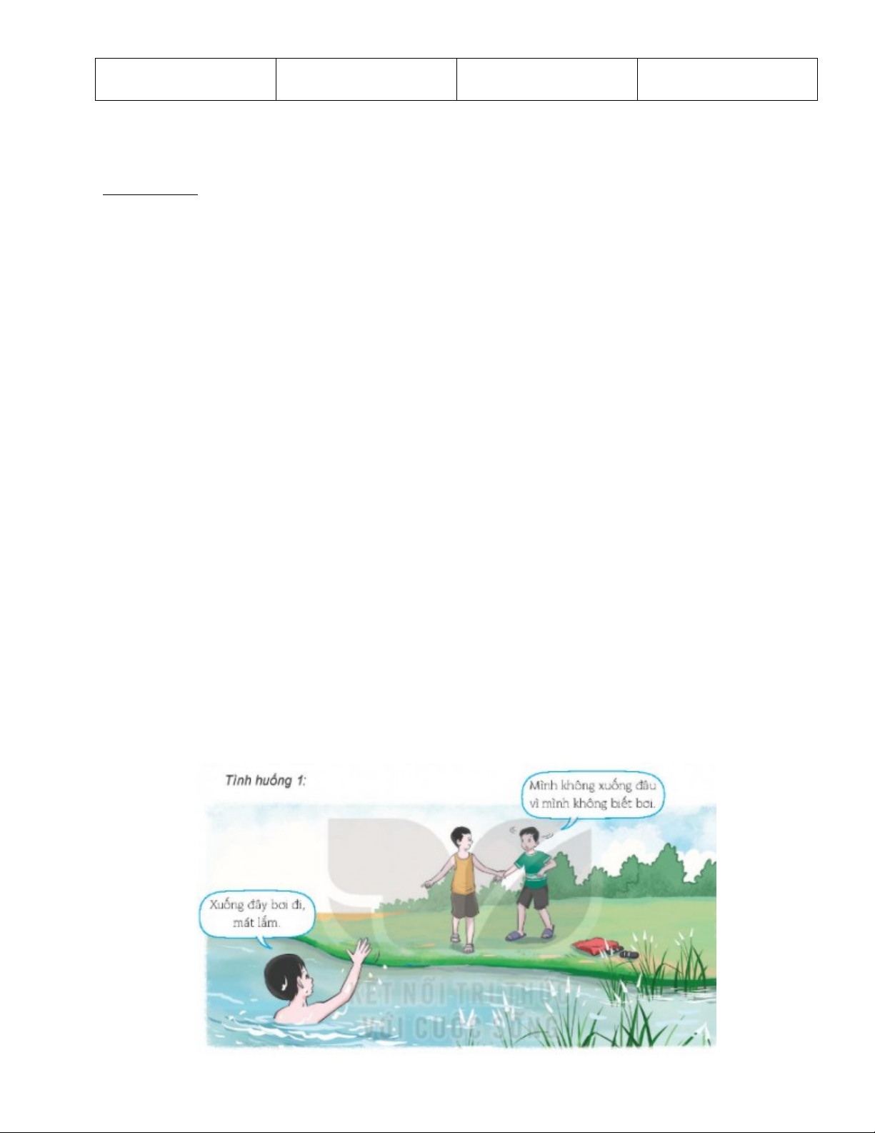 Giải quyết: Mình sẽ từ chối bạn mình không xuống bơi đâu vì mình không biết bơi, mình sẽ đi học bơi vào kì nghỉ.