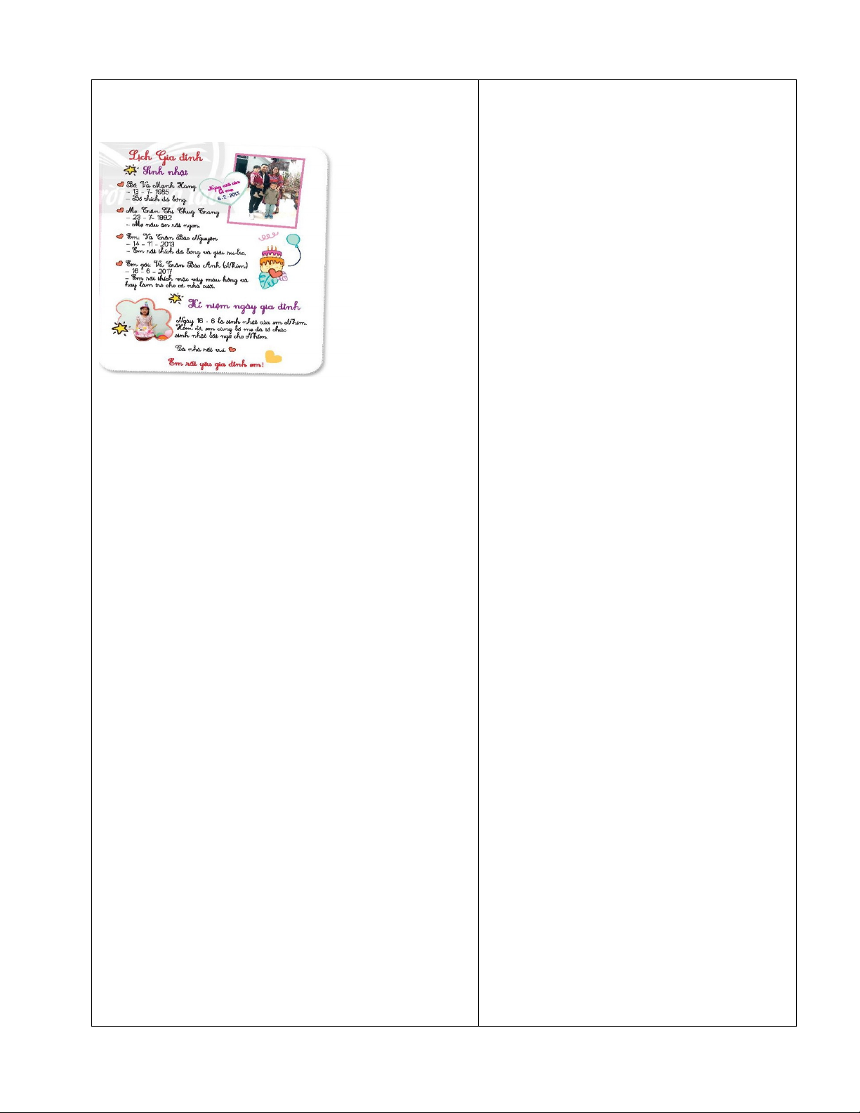 + Lưu ý: HS có thể dán thêm ảnh gia đình cho thêm đẹp và hấp dẫn