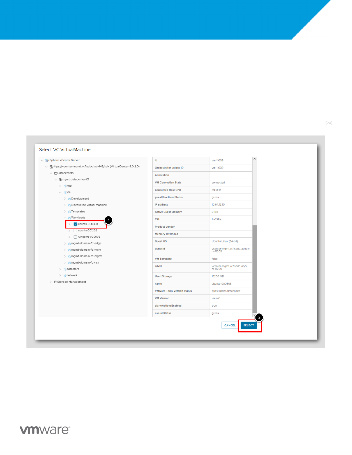 Aria Automation. Select any VM with the name in the format ubuntu-xxxxxx e.g. ubuntu-000308. [25]