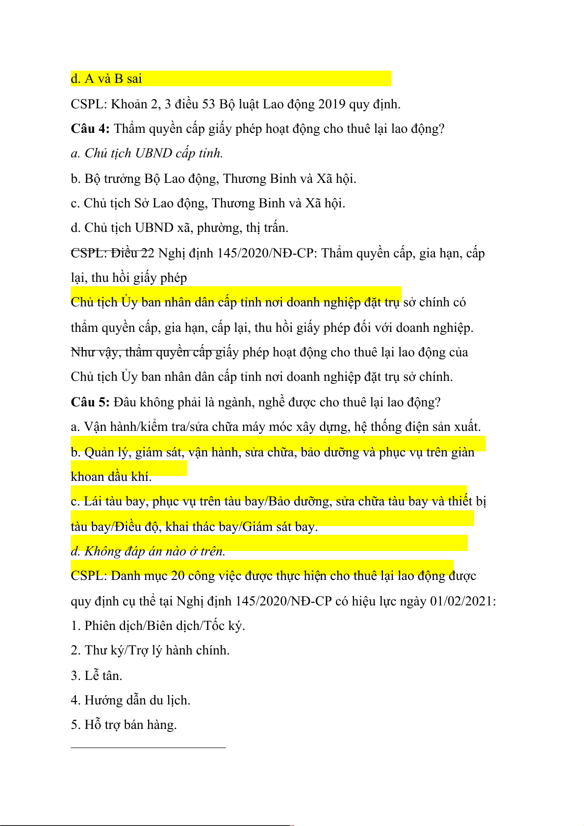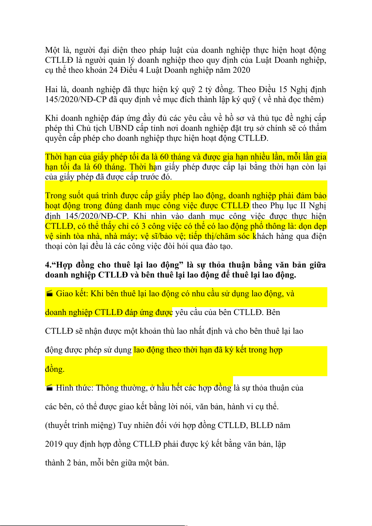 lao động để giao kết hợp đồng lao động với bên thuê lại lao động. CÂU HỎI CUỐI BÀI