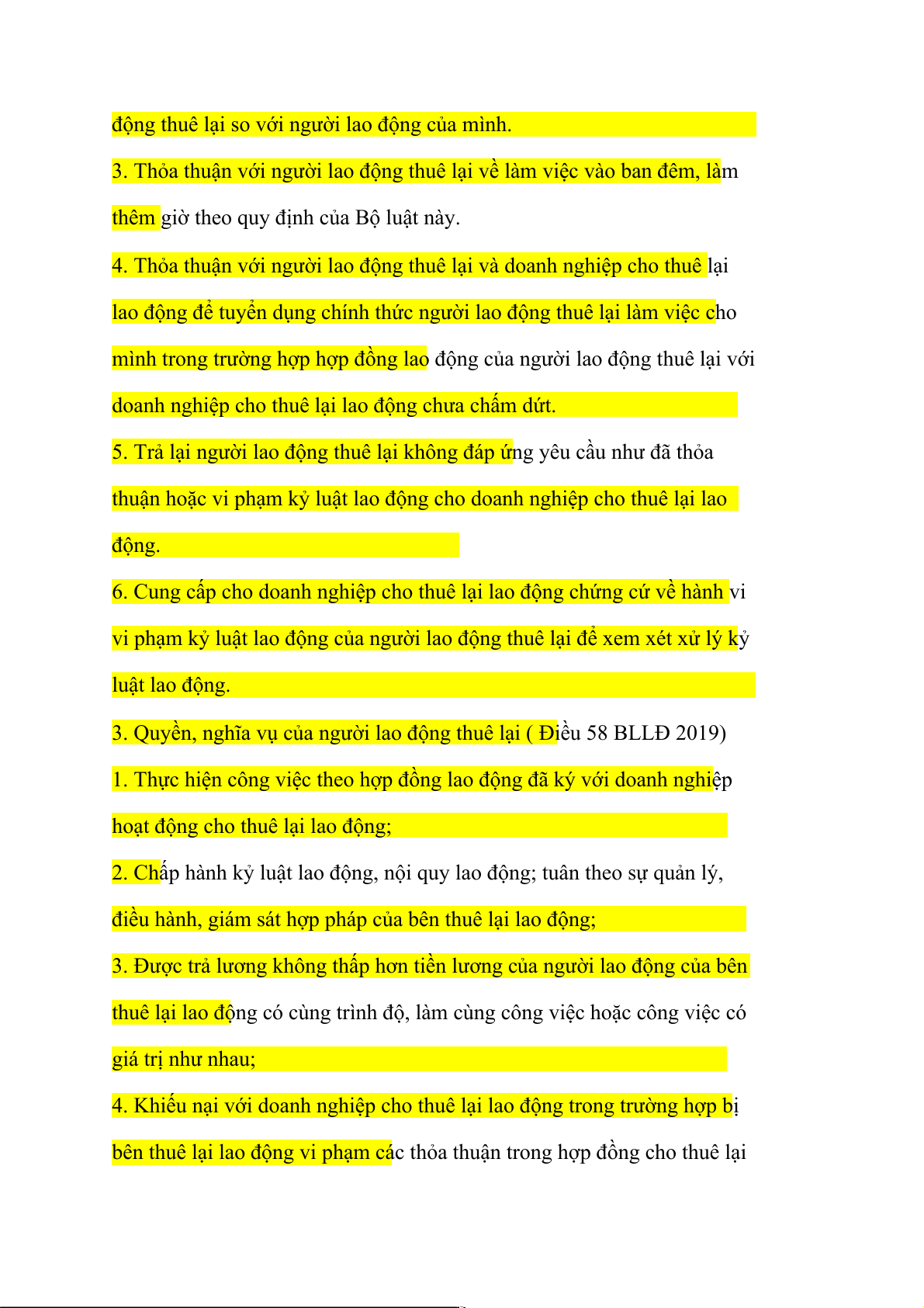3. Quyền, nghĩa vụ của người lao động thuê lại ( Điều 58 BLLĐ 2019)