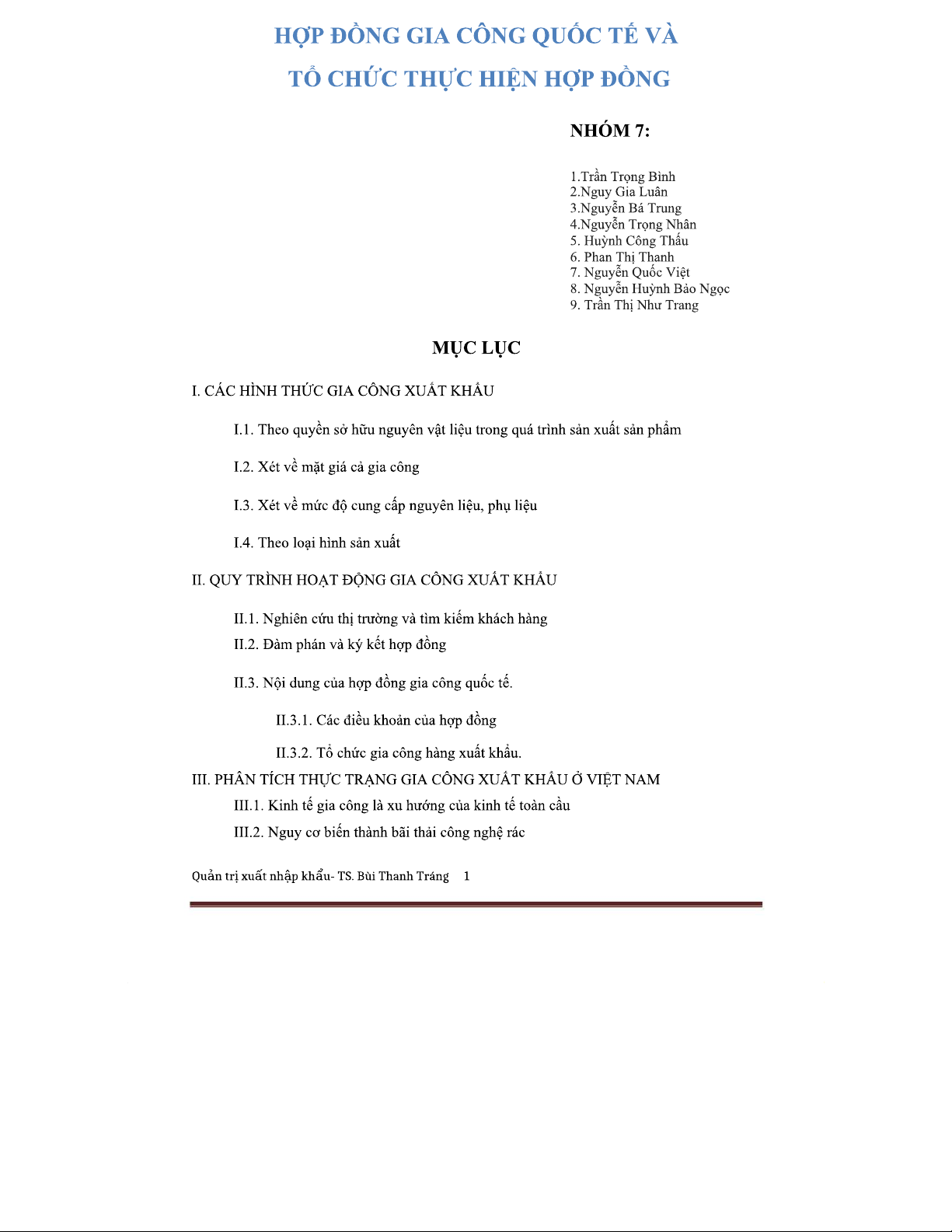 Hợp Đồng Gia Công Quốc Tế - Nhóm 7 Phân Tích và Tổ Chức Thực Hiện