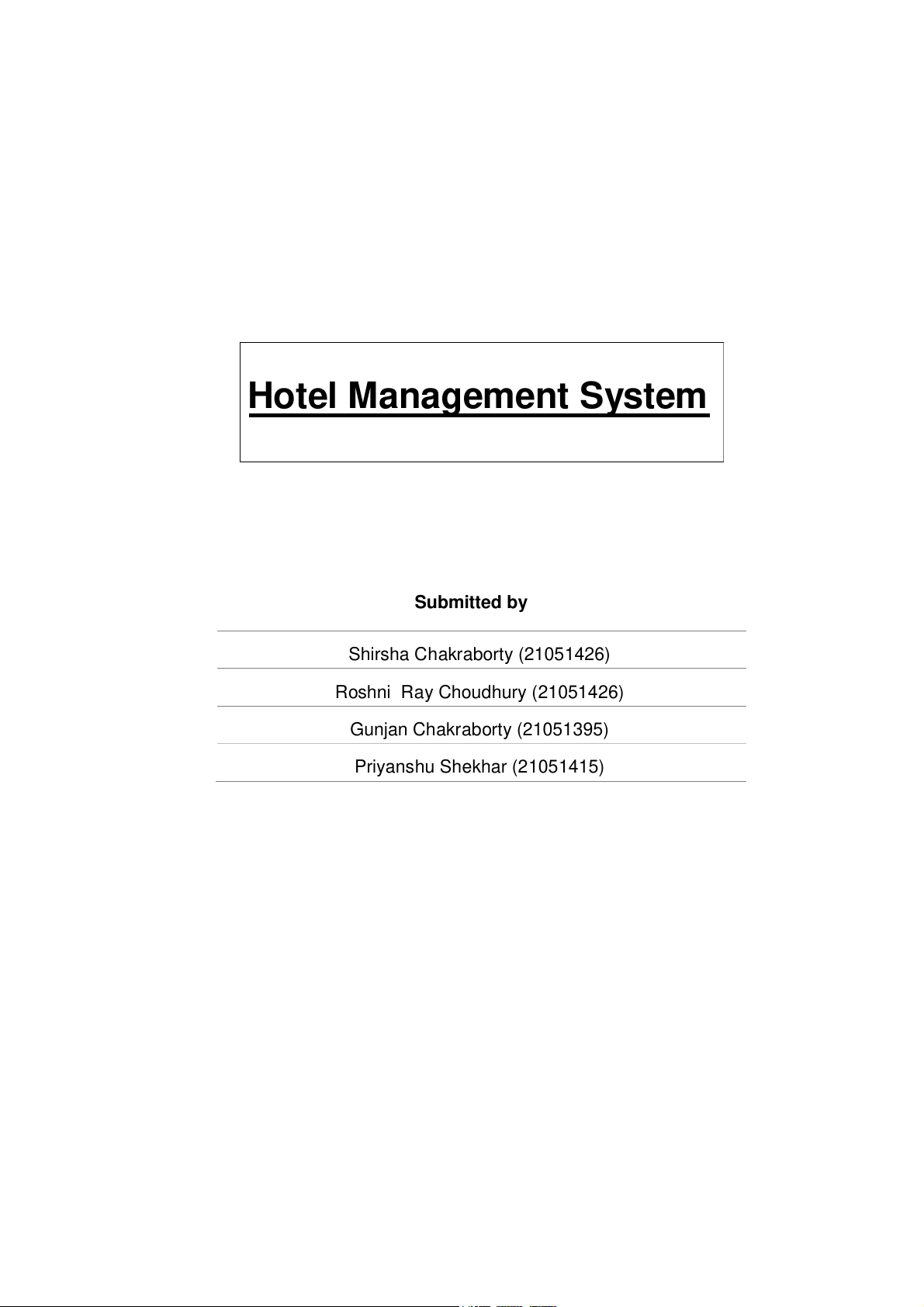 Hotel Management System Submitted by