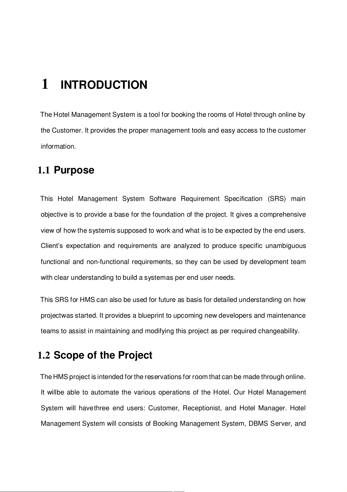 This Hotel Management System Software Requirement Specification (SRS) main