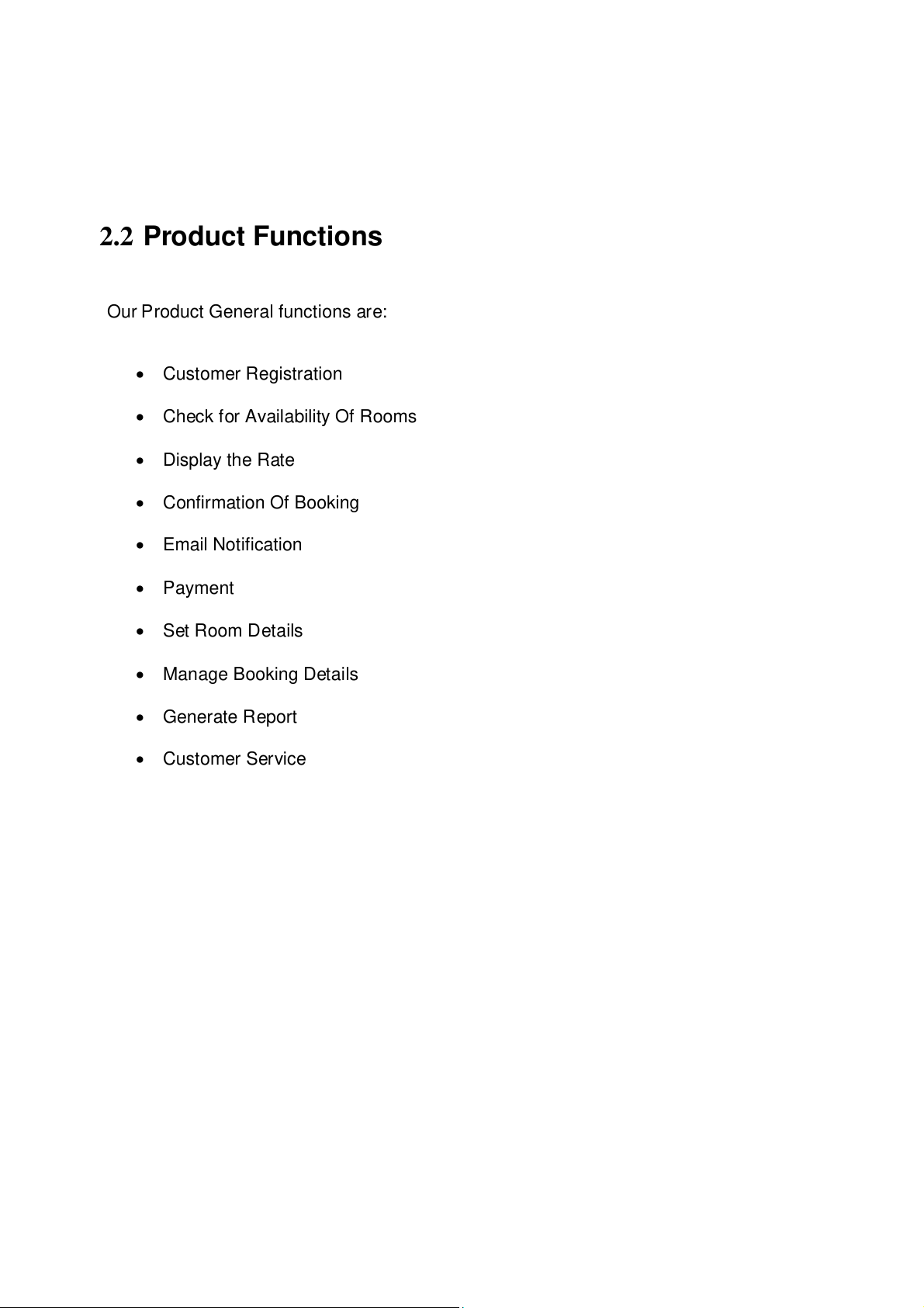 Report Generator. Customers will be able to check for room’s availability, select the