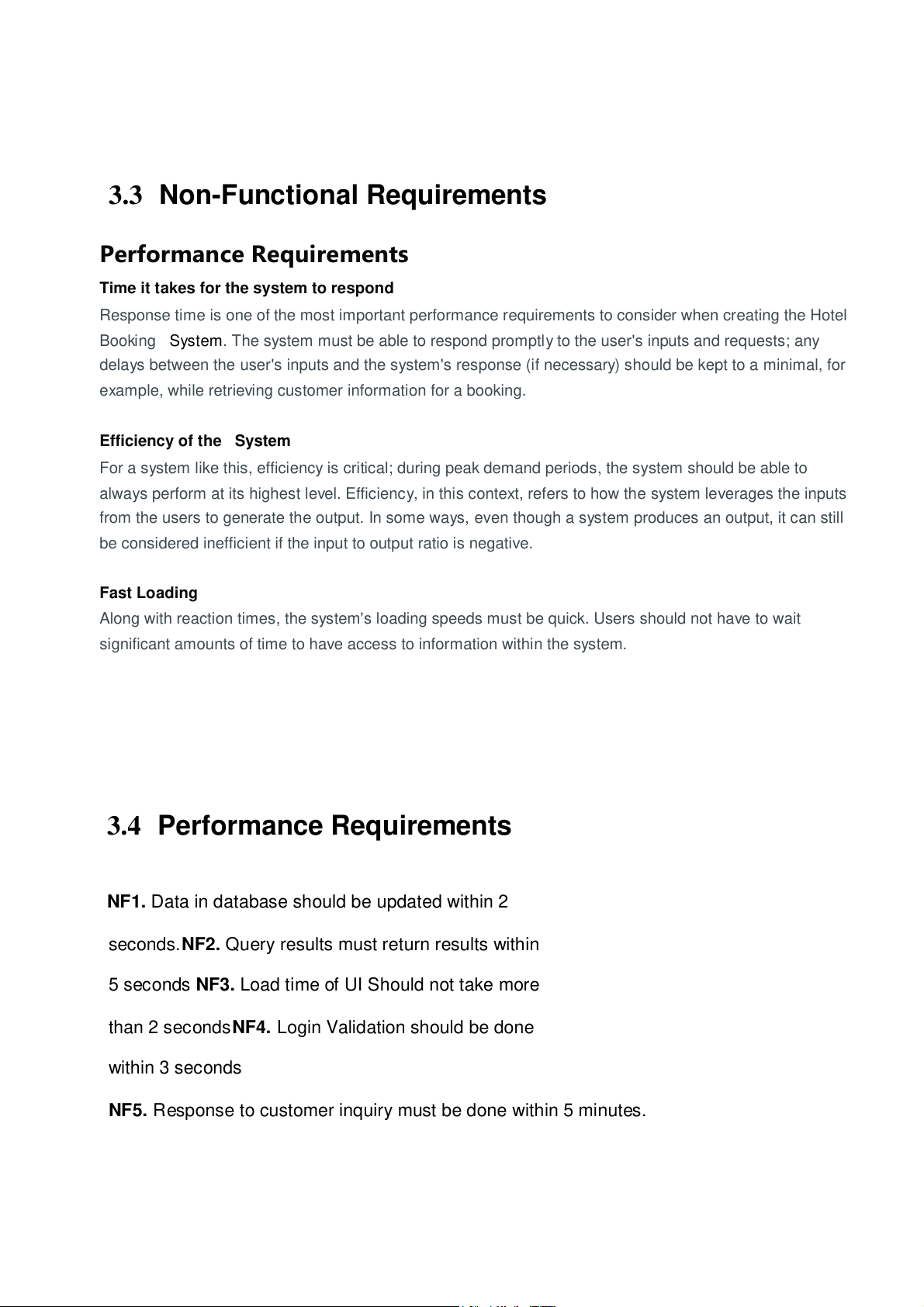3.3 Non-Functional Requirements Performance Requirements