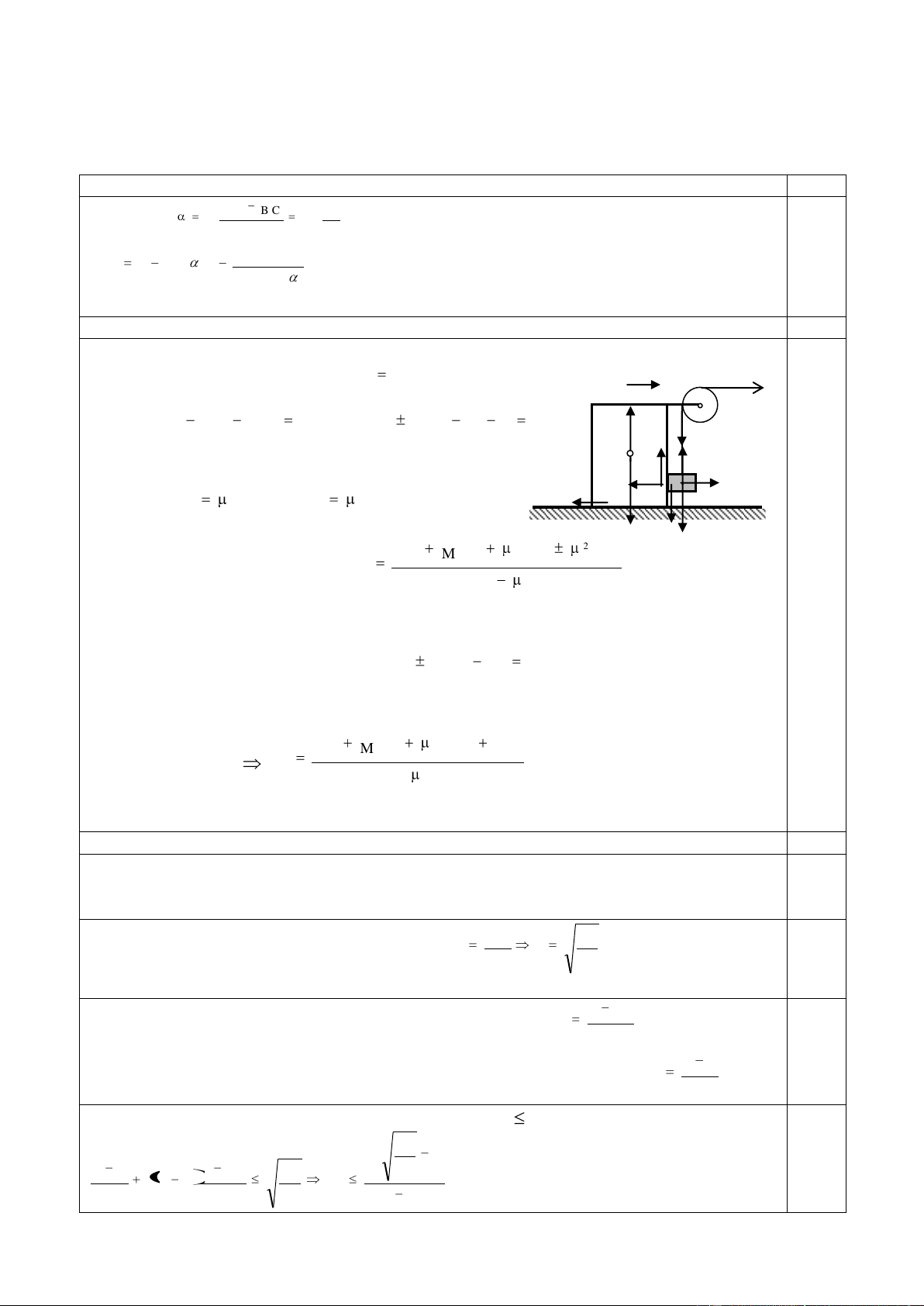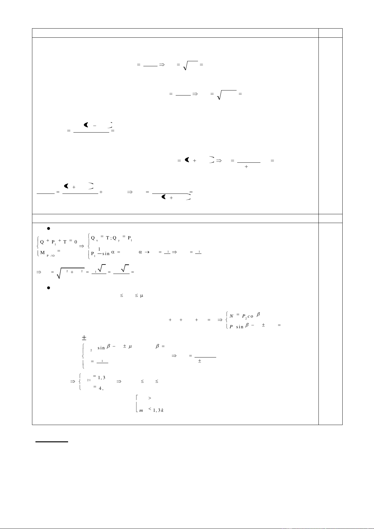 Dấu ( + ) ứng với m có xu hướng đi xuống; Dấu ( - ) ứng với m có xu hướng đi lên 0,25 m M a g m M Giải hệ (1)(2)(3)(5) F (**) 0,25 Bài 3 (1,50 điểm)