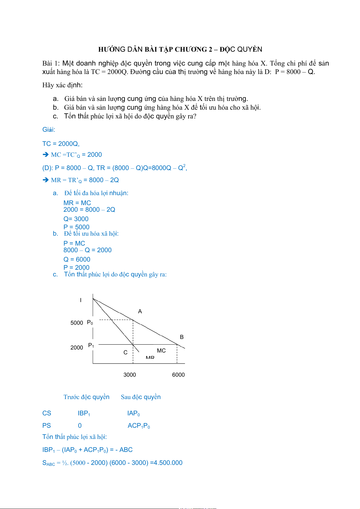 ất phúc lợi xã hội do độ ền gây ra? Giải: TC = 2000Q, MC =TC’Q = 2000