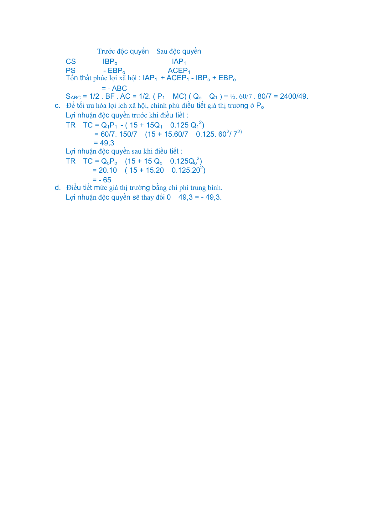 Lợi nhuận độc quyền sẽ i 0 thay đổ 49,3 = - 49,3. –