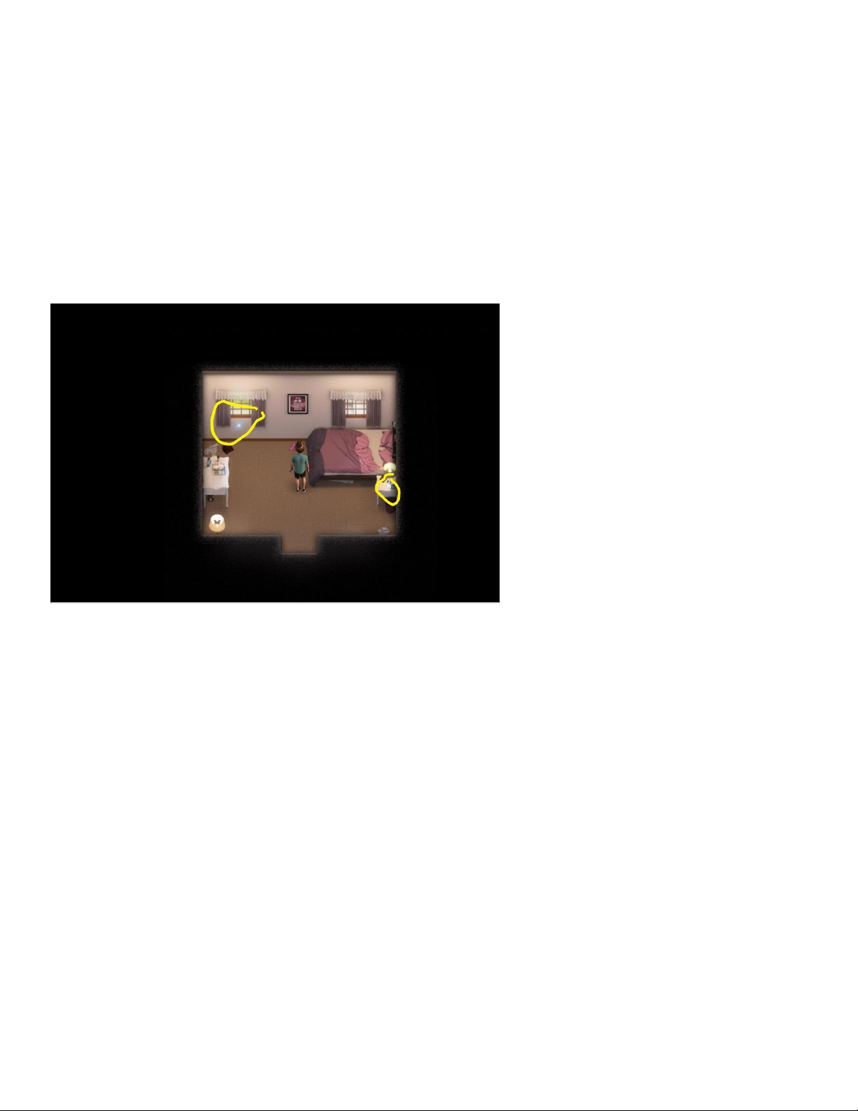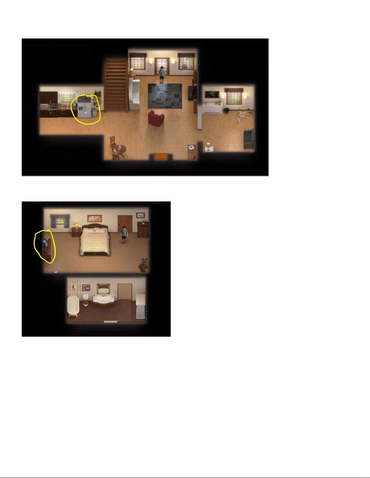 Lên tầng 2 và vào Phòng của Kaley. Bấm vào cả hai mục màu xanh. Không quan trọng thứ tự. Sử dụng ống nhòm để nhìn vào Kaley.