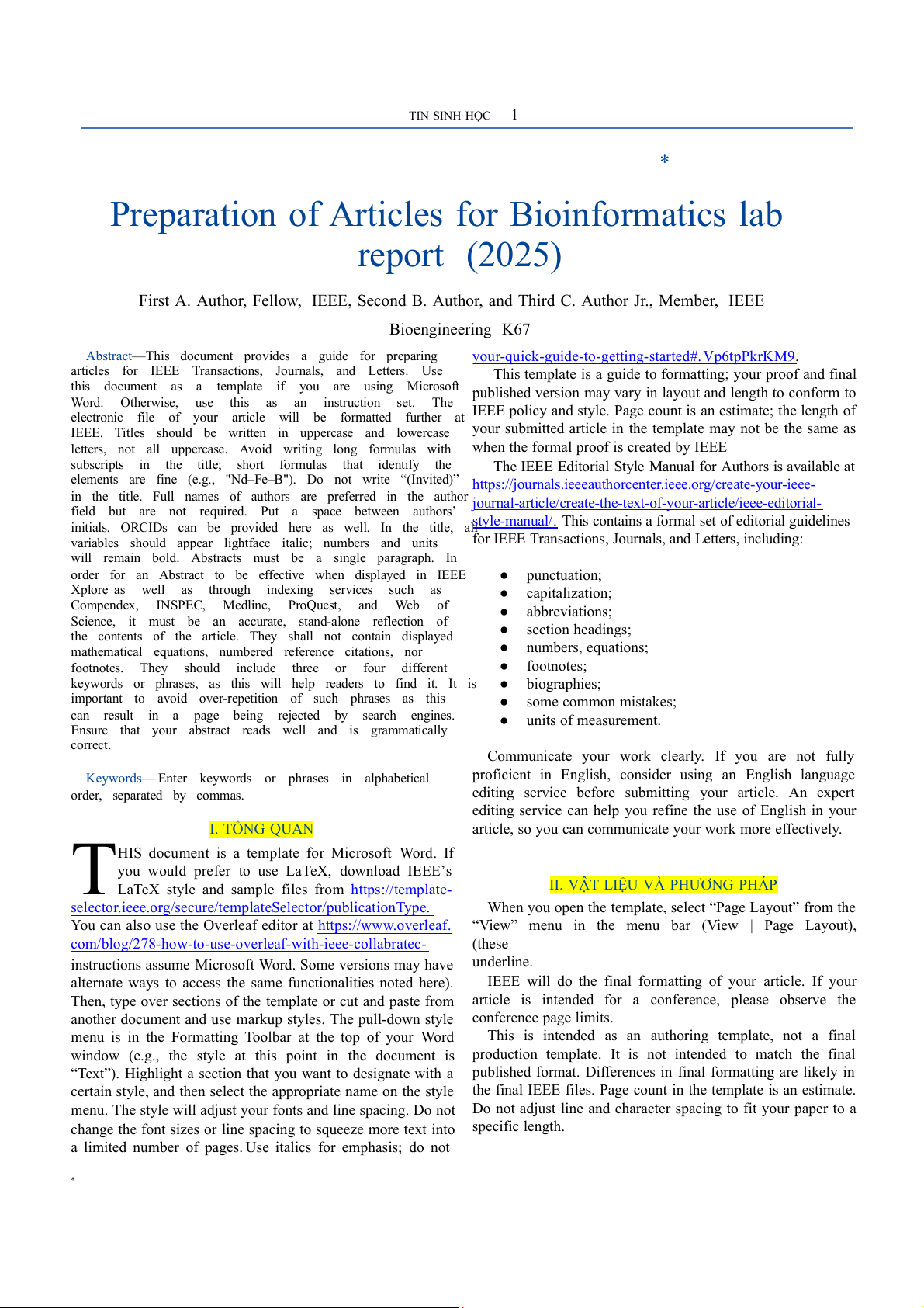 First A. Author, Fellow, IEEE, Second B. Author, and Third C. Author Jr., Member, IEEE Bioengineering K67