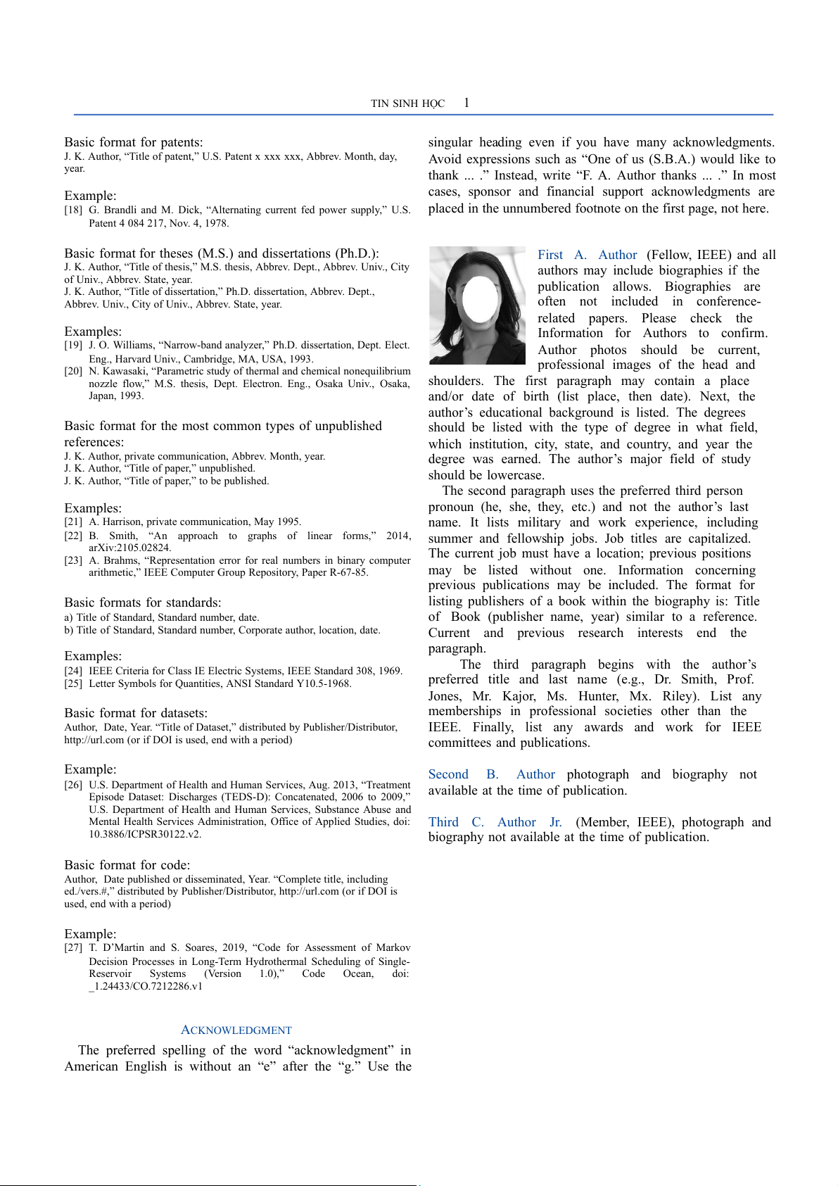 for articles in early access. The doi must be included.) TIN SINH HỌC 1